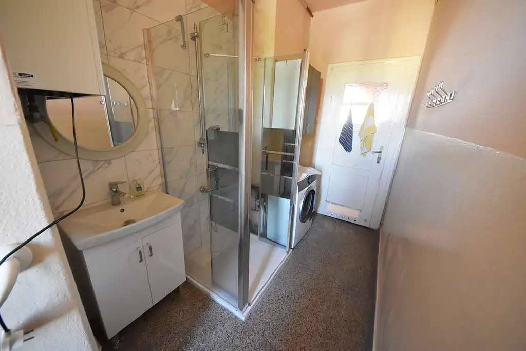 łazienka po remoncie – nowa kabina prysznicowa, umywalka, WC, lustro,