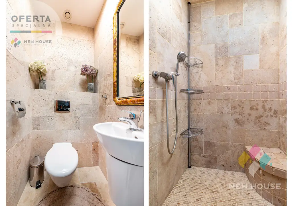 Pokój gościnny i łazienki wykończenie trawertynem.