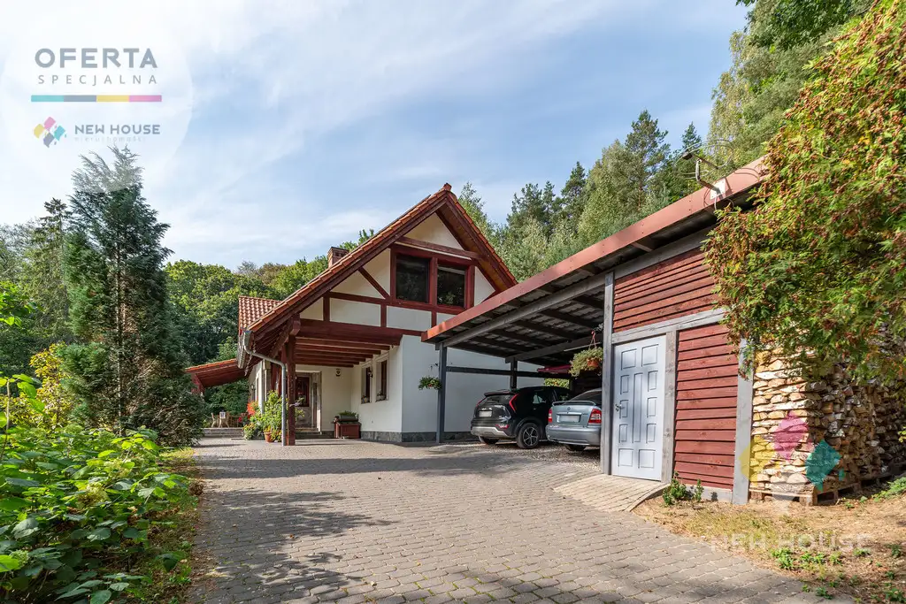 Działka o powierzchni ponad 0,5 ha, otoczona pięknym lasem mieszanym ze starodrzewem zapewniającym prywatność i spokój.