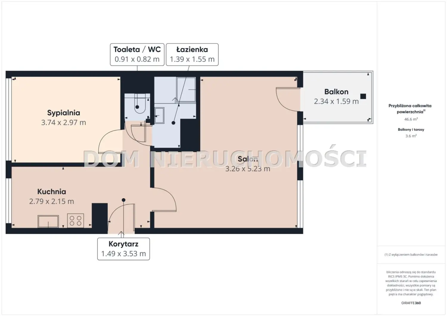 Mieszkanie ma powierzchnię 47,4 m², a w jego skład wchodzą: