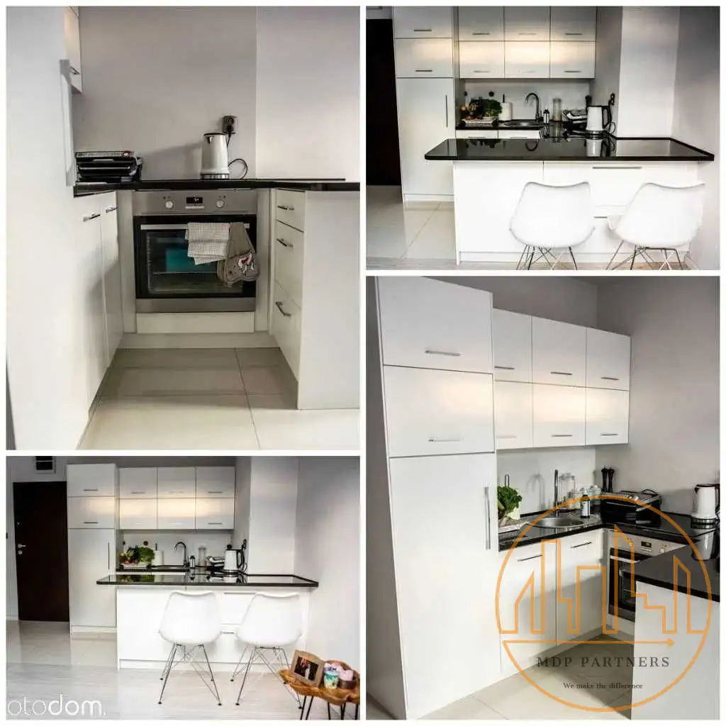 Powierzchnia lokalu mierzona po podłodze to około 40 m², ze względu na skosy powierzchnia lokalu wpisana do Księgi Wieczystej to 24,2 m².Wnętrze mieszkania zostało funkcjonalnie zaprojektowane i podzielone na : - Salon połączony z aneks kuchenny w zabudowie na wymiar, z kamiennym blatem, wysokiej klasy sprzętem AGD i wyspą z hokerami.