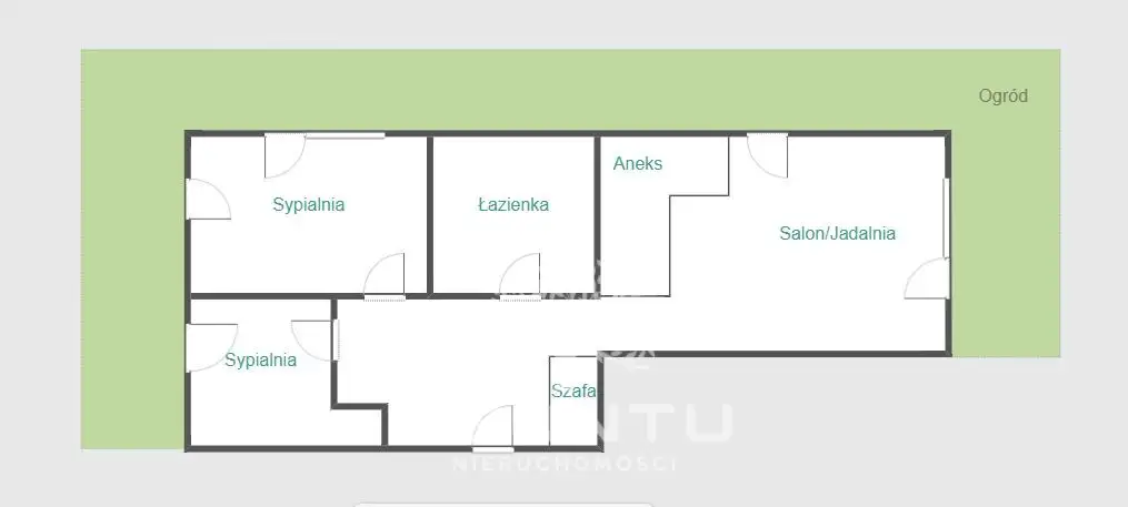 Metraż: 59 m² + 350 m² prywatnego ogrodu,