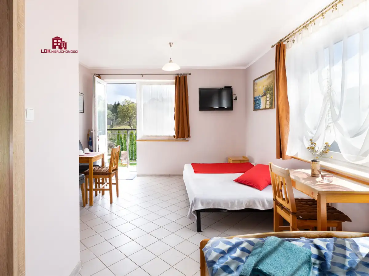 Na tej samej działce, z osobnym wejściem i pełnym zapleczem znajduje się w pełni funkcjonujący gościniec.