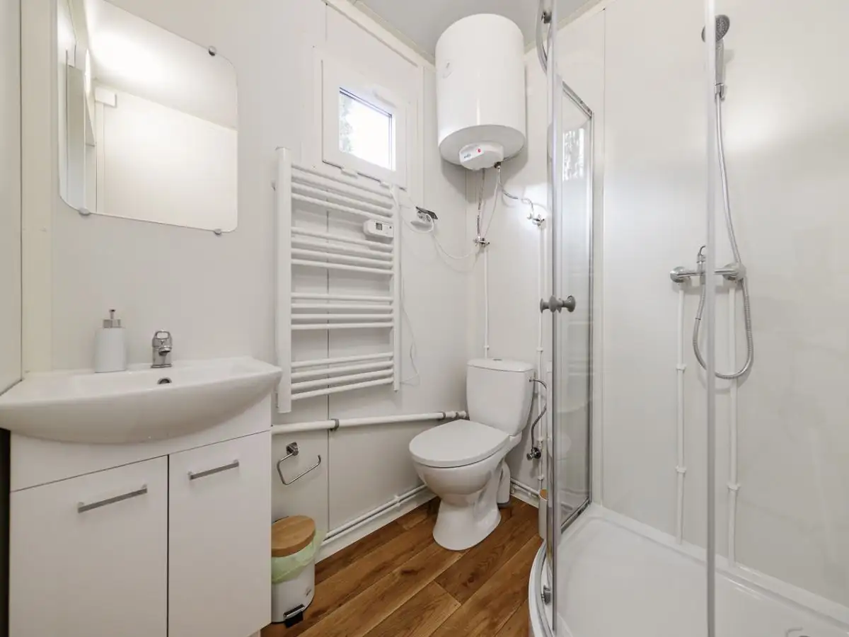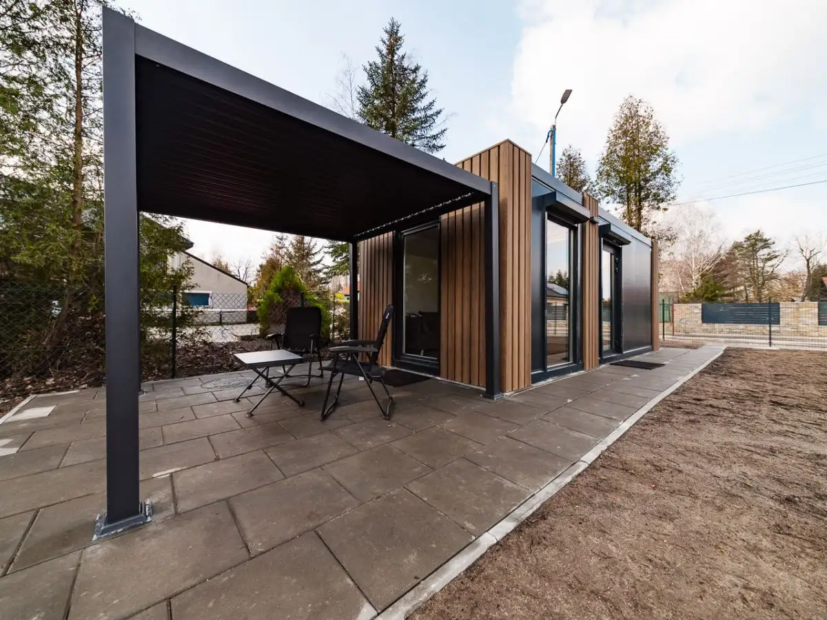 - pawilon nowy fabrycznie z podłączeniem do ochrony, w pełnym wyposażony (aneks kuchenny, łazienka z prysznicem, WC, miejscem do nocowania), klimatyzacja i ogrzewanie,