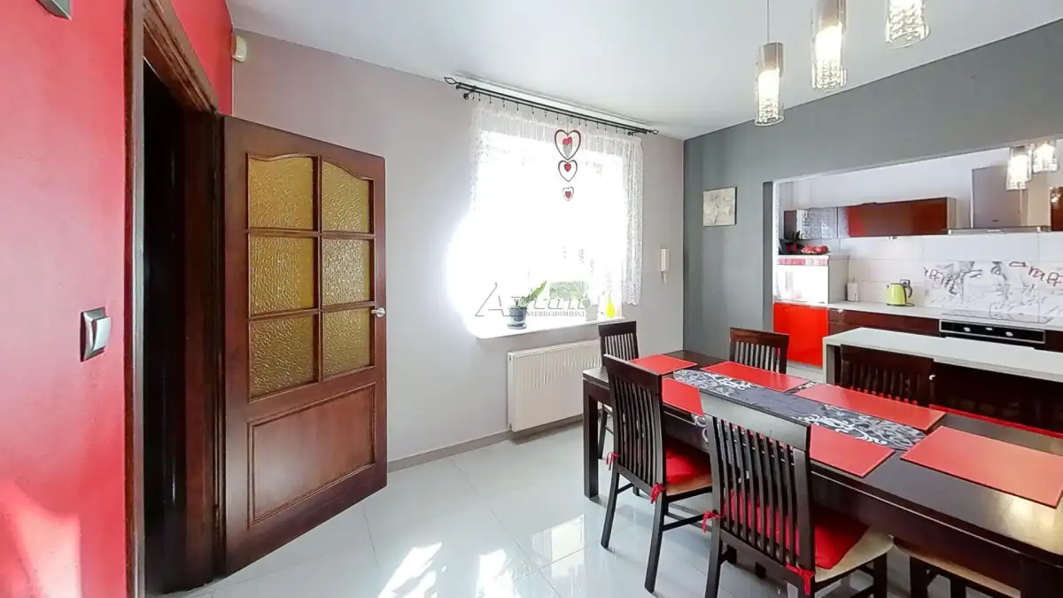 Dom wolnostojący, dwukondygnacyjny, z o powierzchni całkowitej 180 m², a użytkowej 122,40 m², z dwoma garażami, w bardzo dobrym stanie technicznym.