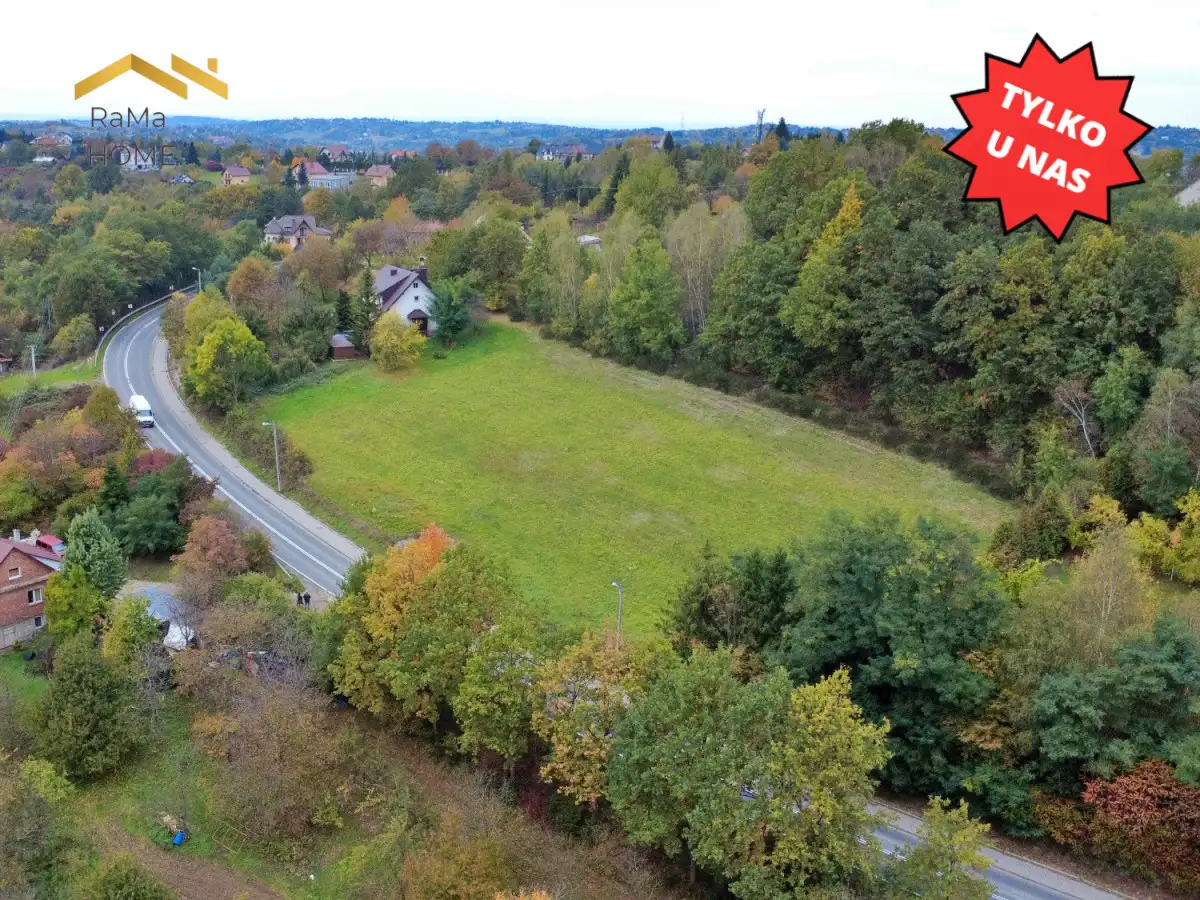 Działka ma regularny kształt i bezpośredni dostęp do drogi publicznej. Działka o nachyleniu południowym z pięknym widokiem na Pogórze Wielickie i Tatry w bezchmurne dni.