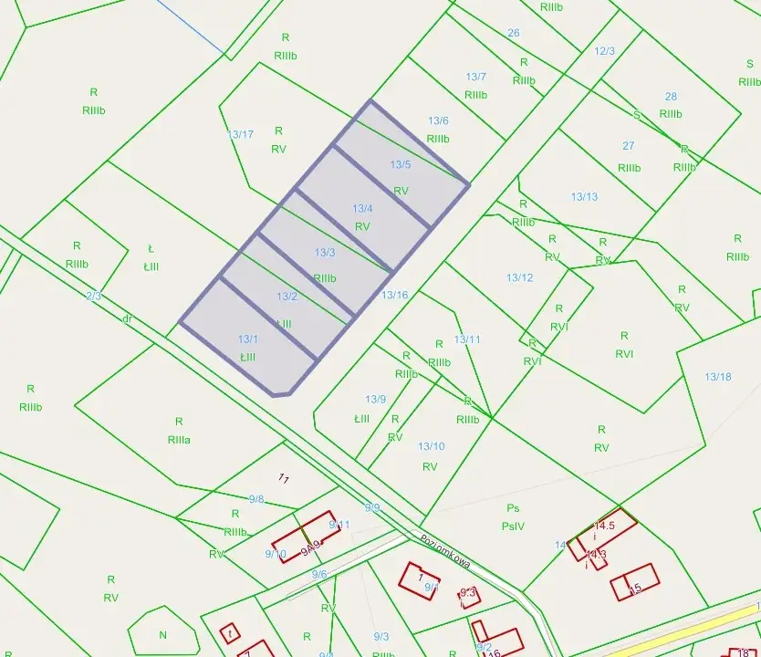 Opis nieruchomości: Nieruchomości gruntowe niezabudowane o regularnym kształcie zbliżonym do prostokąta i równej powierzchni, położone na lekkim skłonie o wystawie południowo-zachodniej. Nieruchomości porośnięte trawą, położone w peryferyjnej strefie lokalizacyjnej miasta w sąsiedztwie pojedynczej zabudowy zagrodowej oraz gruntów rolnych przy ulicy Poziomkowej w Lubaniu.