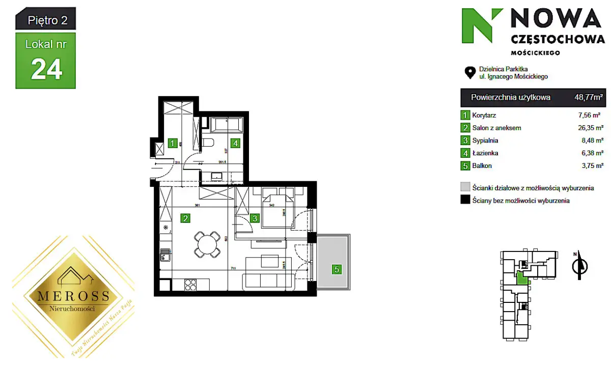 MEROSS Nieruchomości & Nowa Deweloperprzedstawia do sprzedaży mieszkaniezlokalizowane w dzielnicy Parkitka w Częstochowiena osiedlu Nowa Częstochowa Mościckiego Mieszkanie może być...