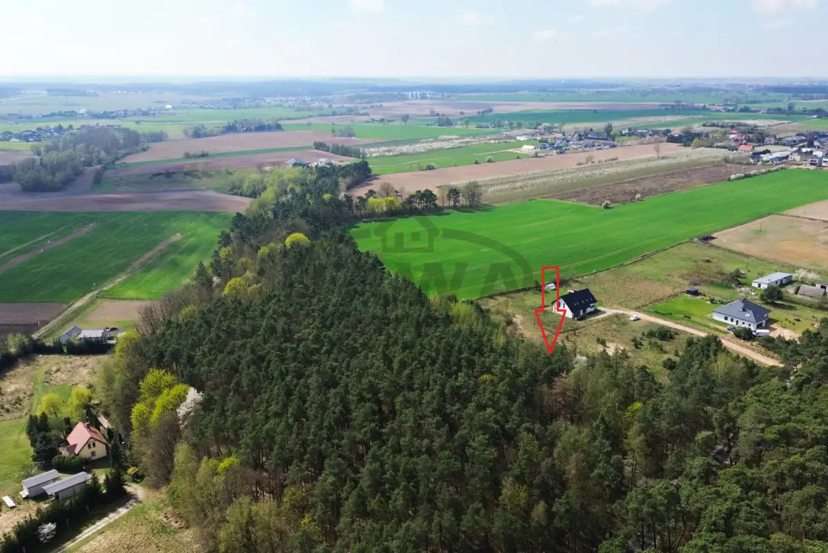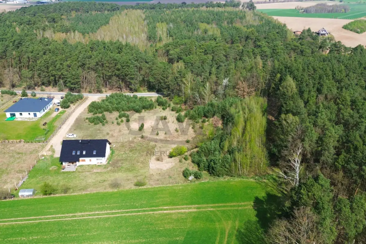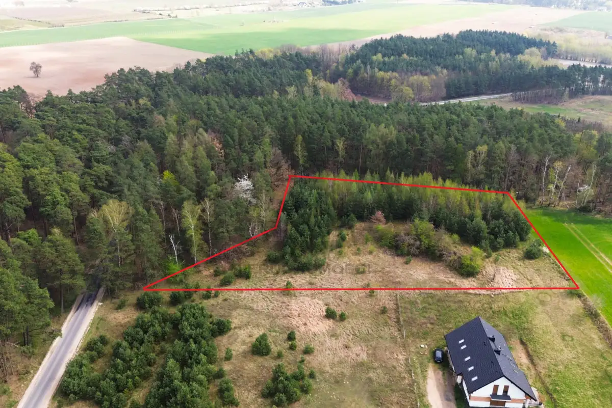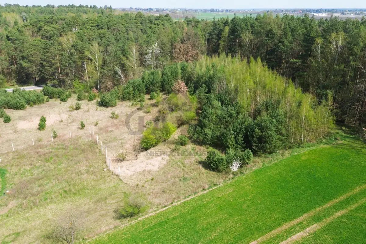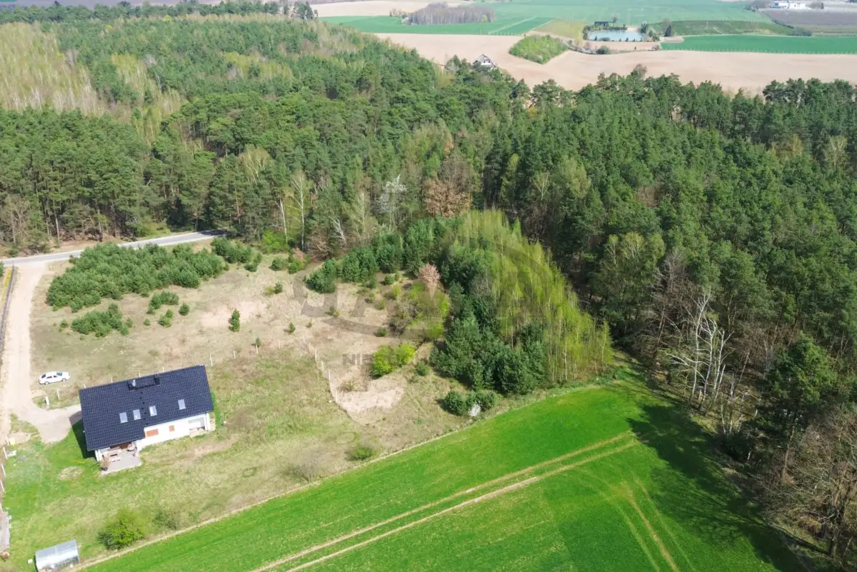 Urokliwa działka o nieregularnym kształcie i powierzchni 4400 m² jest częściowo zalesiona samosiejkami drzew iglastych oraz młodymi brzozami. Dodatkowo nieruchomość graniczy z lasem od strony wschodniej oraz częściowo od północy. Teren działki jest lekko nachylony a ponad to znajduje się tam mała skarpa.