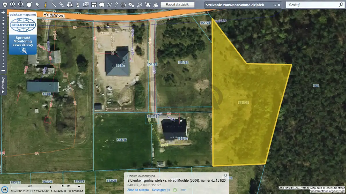 Nieruchomość położona jest przy ulicy Rubinowej na skraju miejscowości pośród nielicznej zabudowy jednorodzinnej.