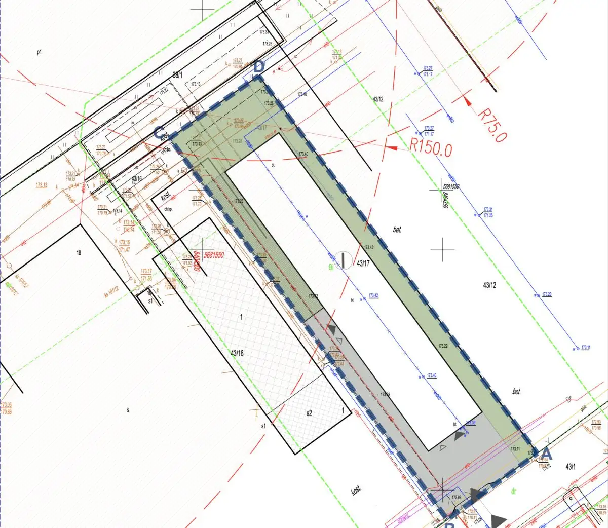 - Wymiary budynku: Szerokość 14 m, długość 72 m