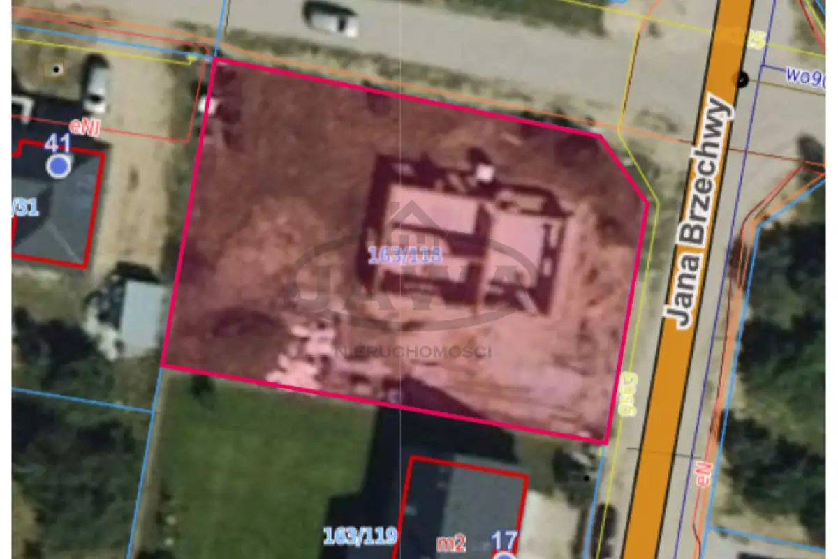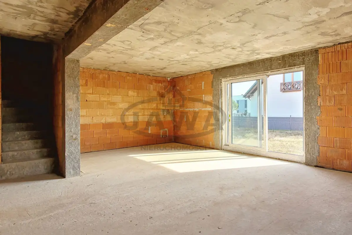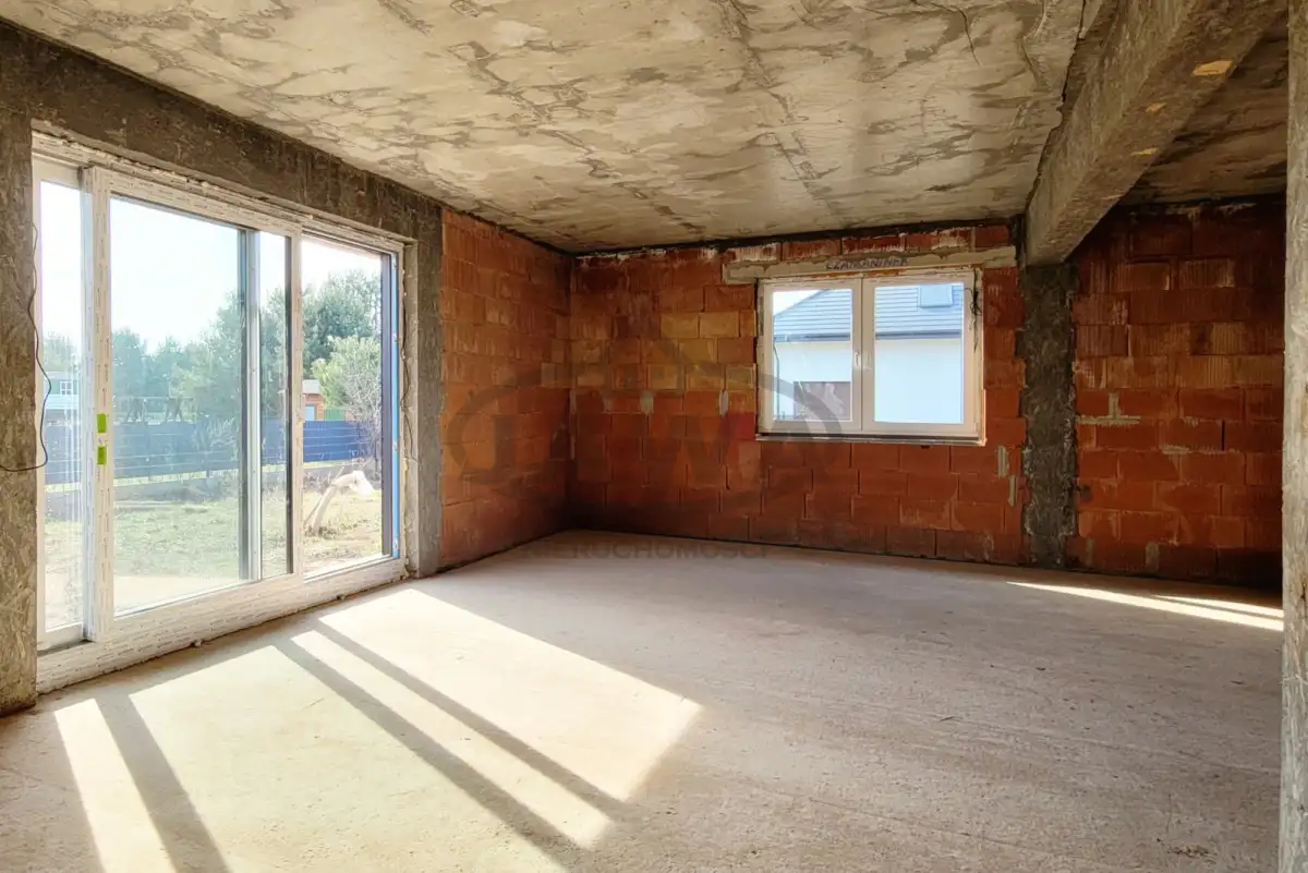 Dom jednorodzinny w stanie surowym zamkniętym z poddaszem użytkowym. Jest to budynek wolnostojący o powierzchni użytkowej ponad 200 metrów kwadratowych na działce 1021 m², z wbudowanym dwustanowiskowym garażem, z dachem krytym dachówką ceramiczną. Działka od południa ogrodzona siatką systemową, jest też wylany fundament pod ogrodzenie murowane. Do domu doprowadzone woda i kanalizacja. Skrzynka z prądem przy działce.