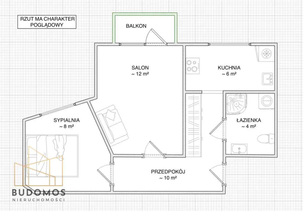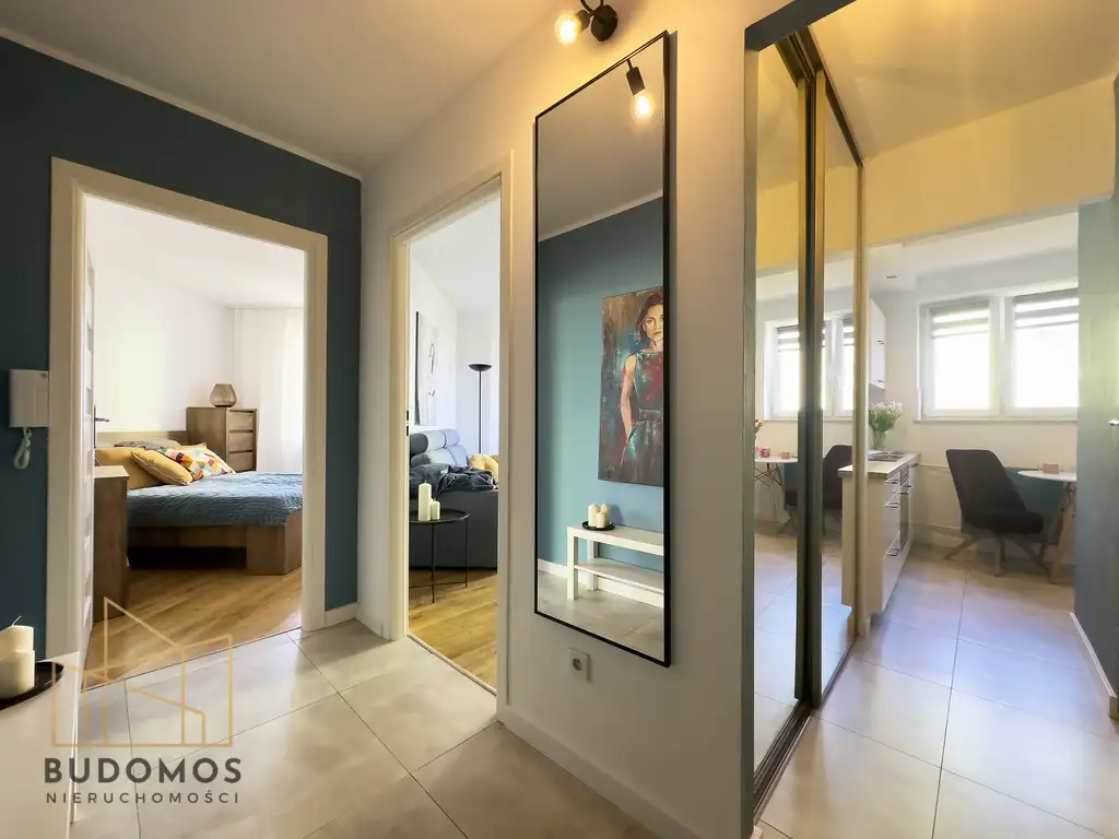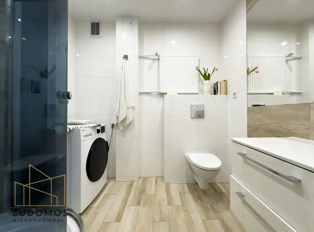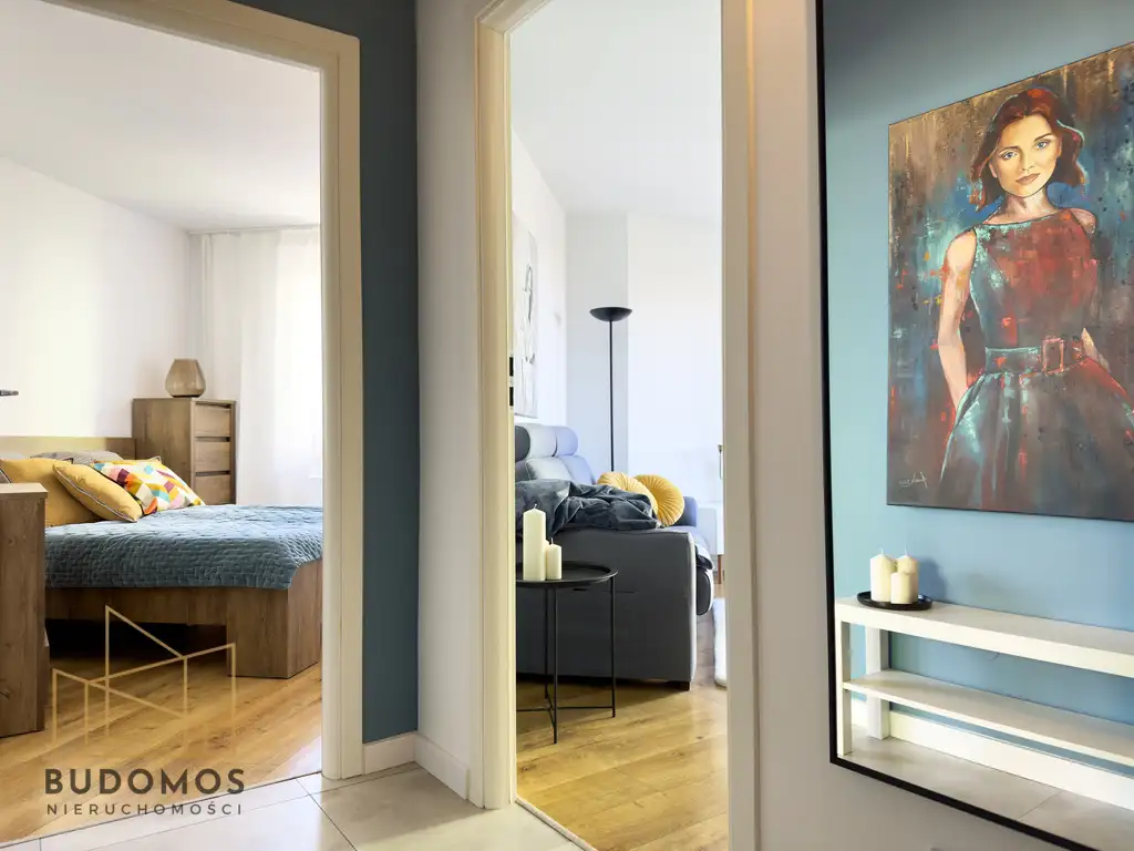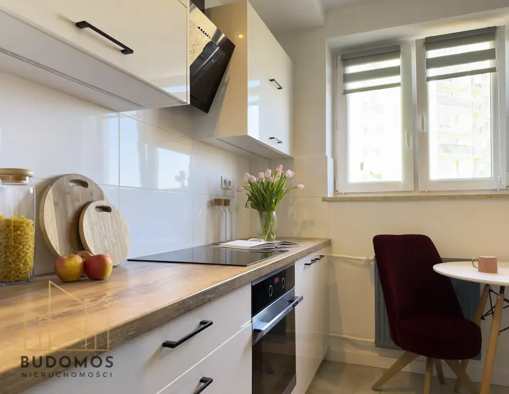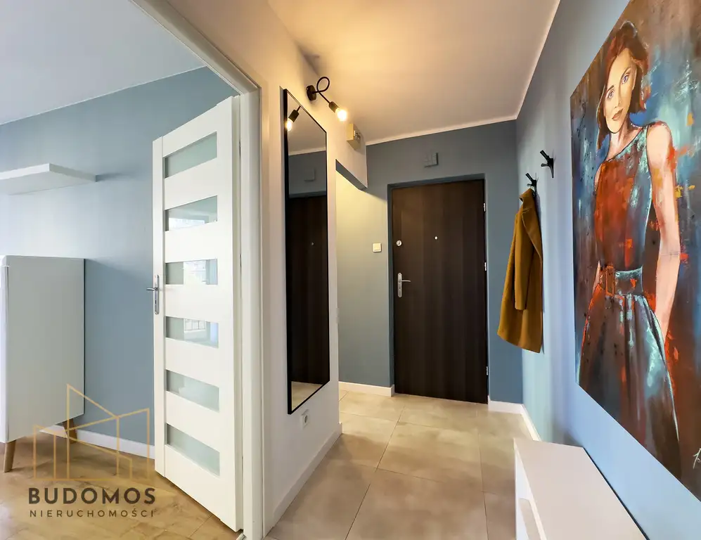 Jasny, przestronny salon (ok. 12 m²) z wyjściem na balkon,Przytulna sypialnia (ok. 8 m², wystawa okien na północny zachód),Osobna, duża kuchnia z oknem wyposażona w sprzęt AGD (strona północno-zachodnia, powierzchnia ok. 6 m²),Łazienka z prysznicem, połączona z toaletą, wyposażoną w pralkę (ok. 4 m²),Przedpokój z elegancką zabudowaną szafą z lustrem.