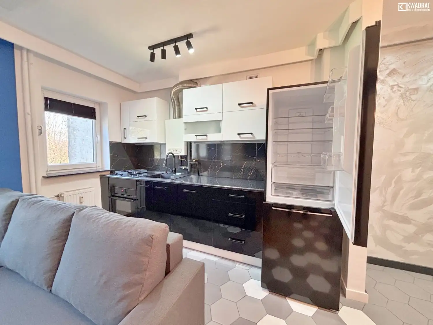 Mieszkanie w pełni wyposażone w sprzęt AGD - lodówka, płyta indukcyjno-gazowa, piekarnik z funkcją kuchenki mikrofalowej, pralko-suszarka.