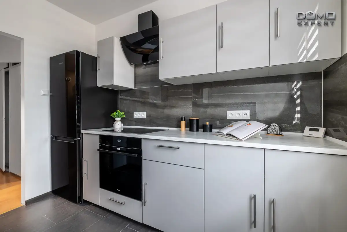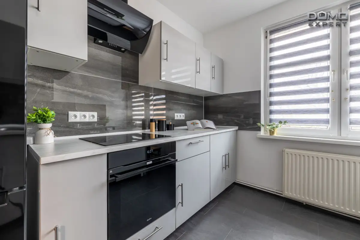 - nowa zabudowa kuchenna z lodówką, piekarnikiem, okapem, płytą indukcyjną, zmywarką