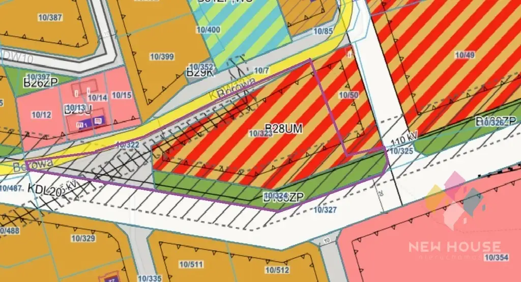 działka 10/323 oznaczona symbolem B28UM- tereny zabudowy usługowej i/lub mieszkaniowej