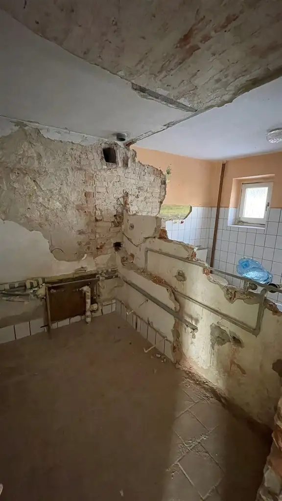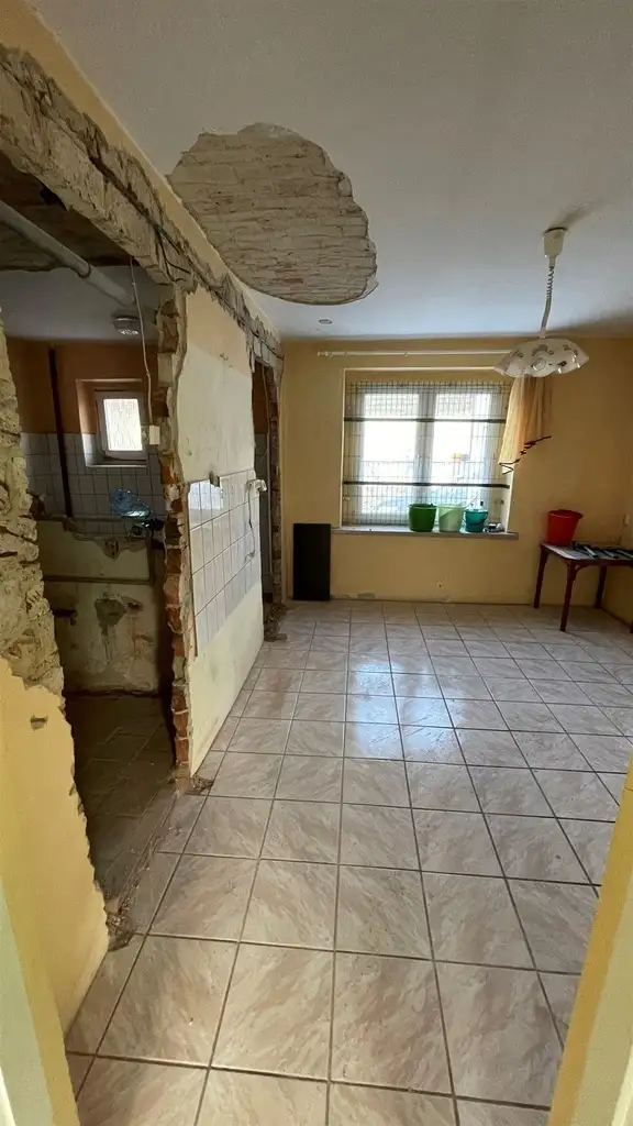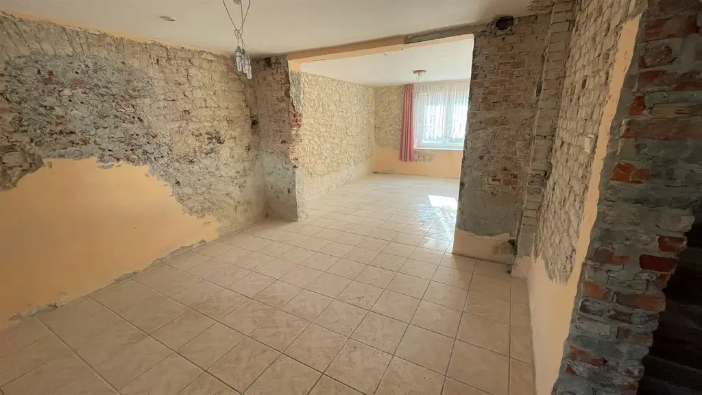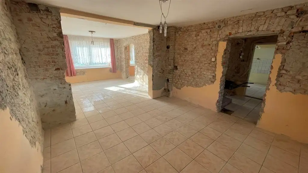 Budynek jednokondygnacyjny, w trakcie remontu (częściowo skute stare tynki, wyburzona ścianka działowa) z oknami o profilach PCV, dachem dwu spadowym krytym dachówką cementową. Nieruchomość składa się z trzech pokoi, kuchni, łazienki. Wysokie poddasze oraz budynki gospodarcze do zagospodarowania - po remoncie. W cenie nieruchomości znajduje się dachówka ceramiczna oraz niezbędny materiał do remontu dachu. Media: prąd, woda, gaz (wydana decyzja o przyłączeniu, planowane przyłączenie luty 2024), szambo na posesji
