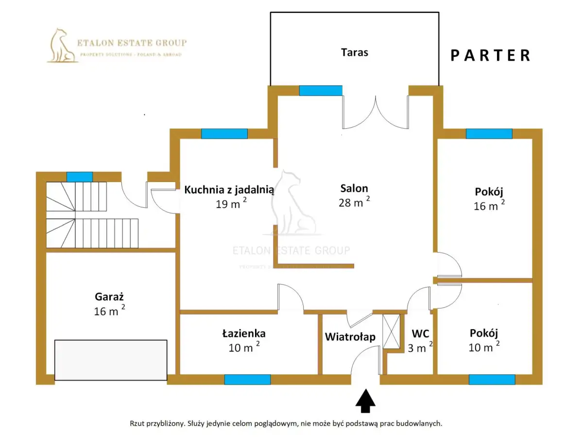 Pomieszczenie nad garażem (15 m²) - z osobnym wejściem i toaletą.