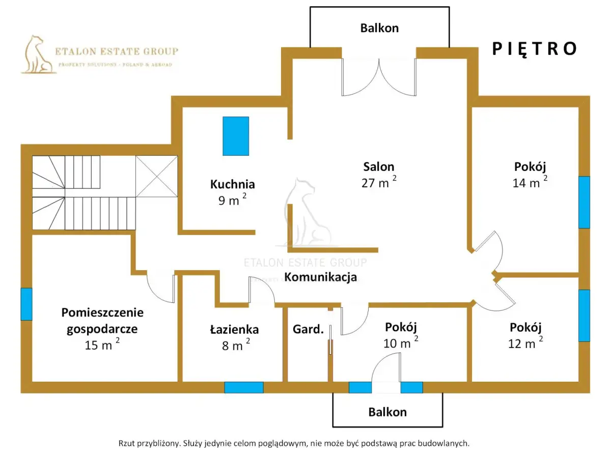 Trzy sypialnie (14, 12, 10 m²) - jedna z garderobą