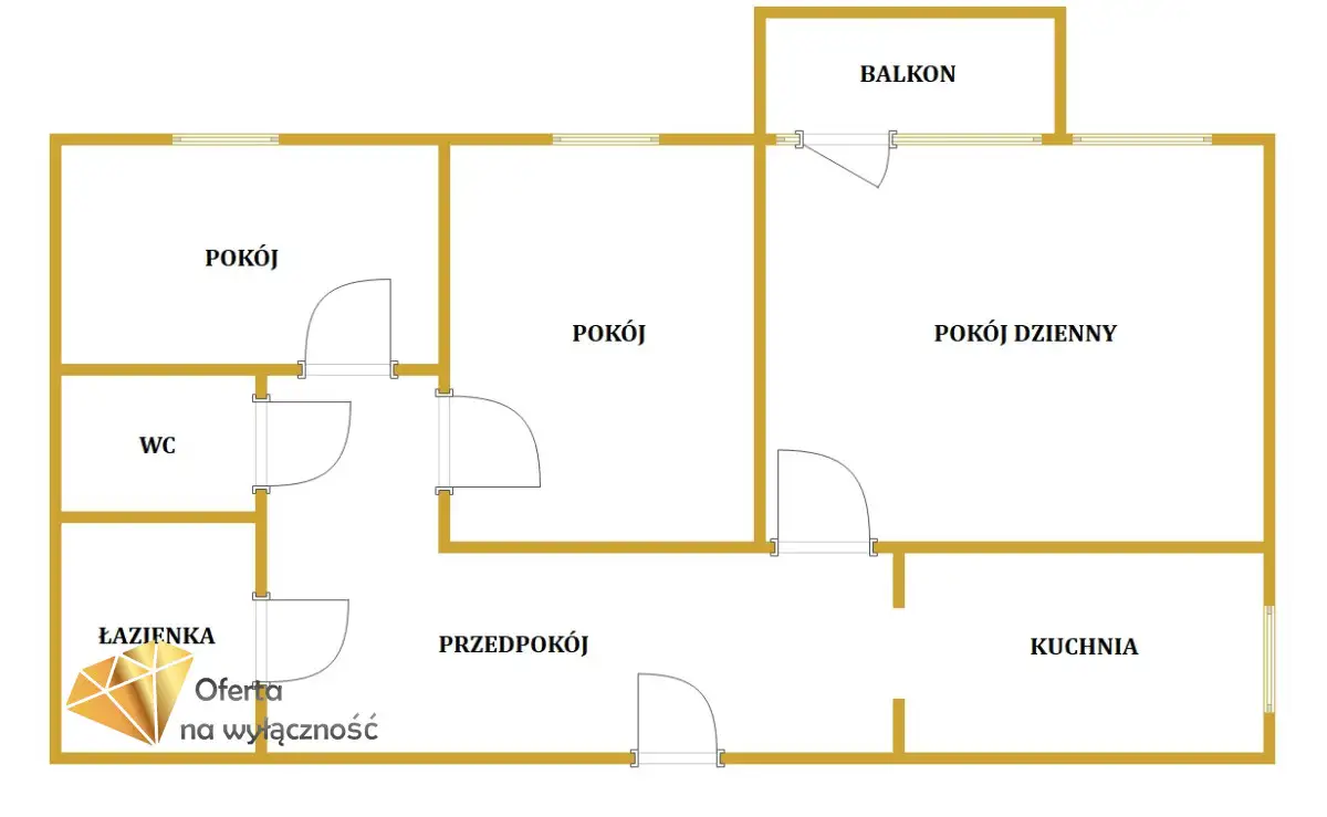 W mieszkaniu trzy pokoje, oddzielna kuchnia ,łazienka z WC i WC oraz przedpokój.