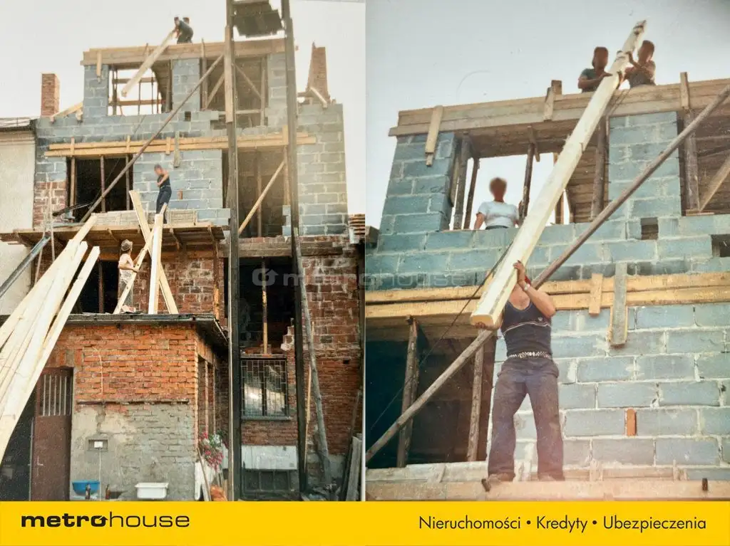 Budynek wybudowany z betonu komórkowego (spieniony pustak), cegły i pustaka ceramicznego, dach dwuspadowy - więźba tradycyjna, blacha trapezowa, front budynku obłożony sidingiem i kamieniem elewacyjnym.