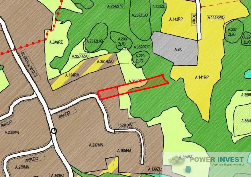 - działka przylega bezpośrednio do drogi gminnej oznaczonej symbolem 85KDD,