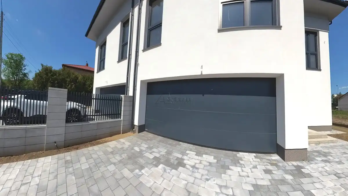Nowoczesna bryła budynku z elegancką kolorystyką w odcieniach bieli i szarości. Ogród od strony salonu stanowi idealne miejsce komfortowego wypoczynku, zapewni przyszłym mieszkańcom spokój i intymność.