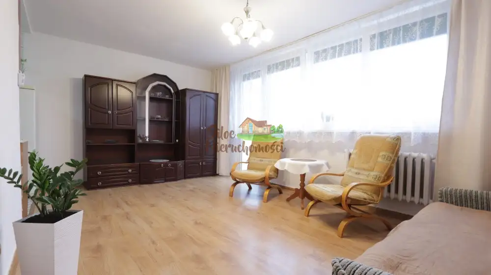 Mieszkanie o powierzchni 28,90 m² zostało w pełni zaplanowane, by optymalnie wykorzystać przestrzeń, pomimo niewielkiego metrażu. Wnętrze jest komfortowo umeblowane i gotowe do zamieszkania, zawierając rozkładaną wersalkę, stolik z dwoma fotelami oraz zestaw mebli do salonu.