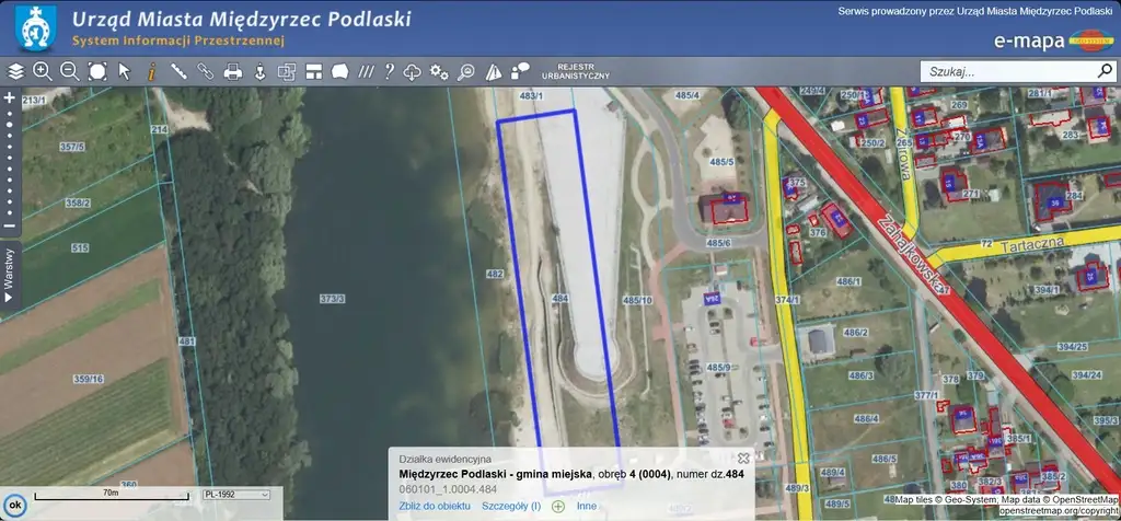 Przedmiotowy teren zgodnie ze zmianą miejscowego planu zagospodarowania przestrzennego obszaru „Żwirowni” w Międzyrzecu Podlaskim leży na terenie oznaczonym symbolem 206ZP-US o głównym przeznaczeniu pod zieleń parkową urządzoną, z ogólnodostępnymi elementami usługi turystyki i sportu.