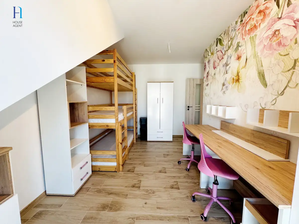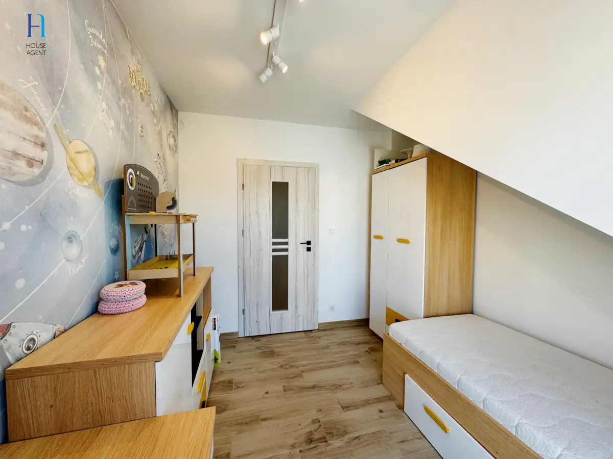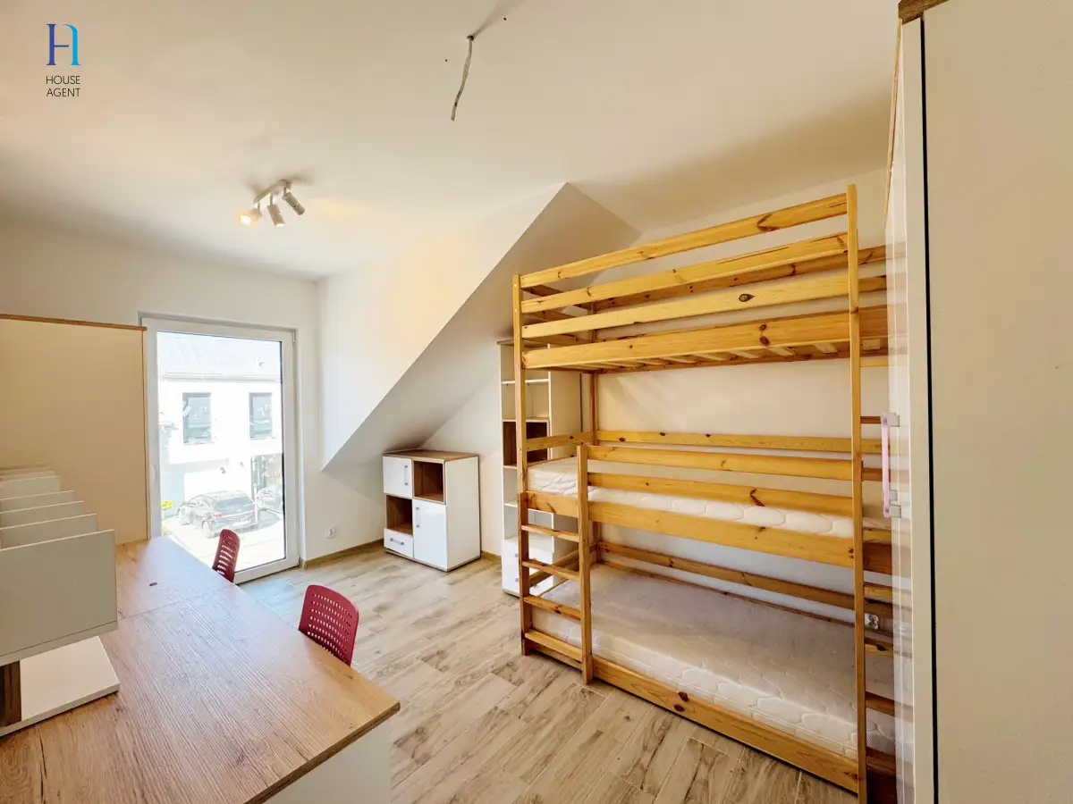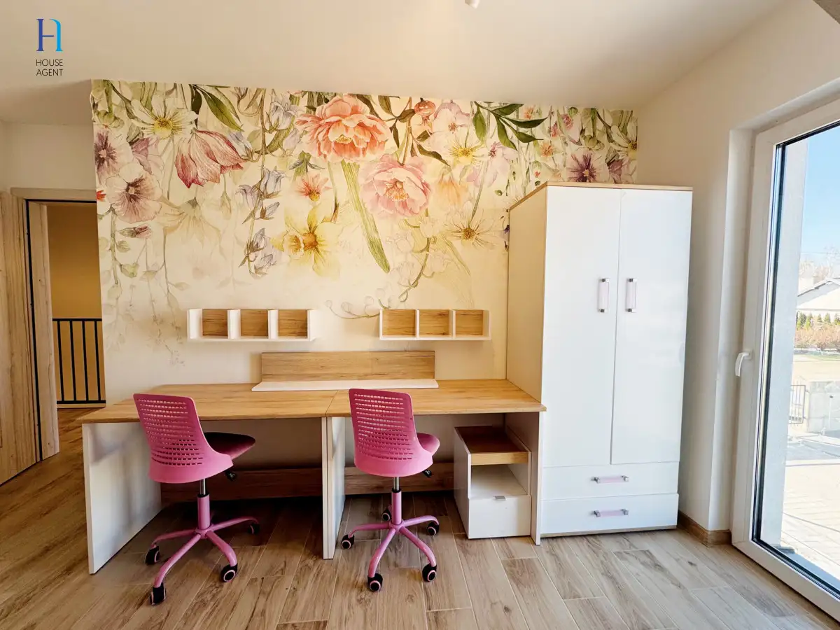 Na piętrze czekają na Ciebie 4 pokoje oraz łazienka z wanną.