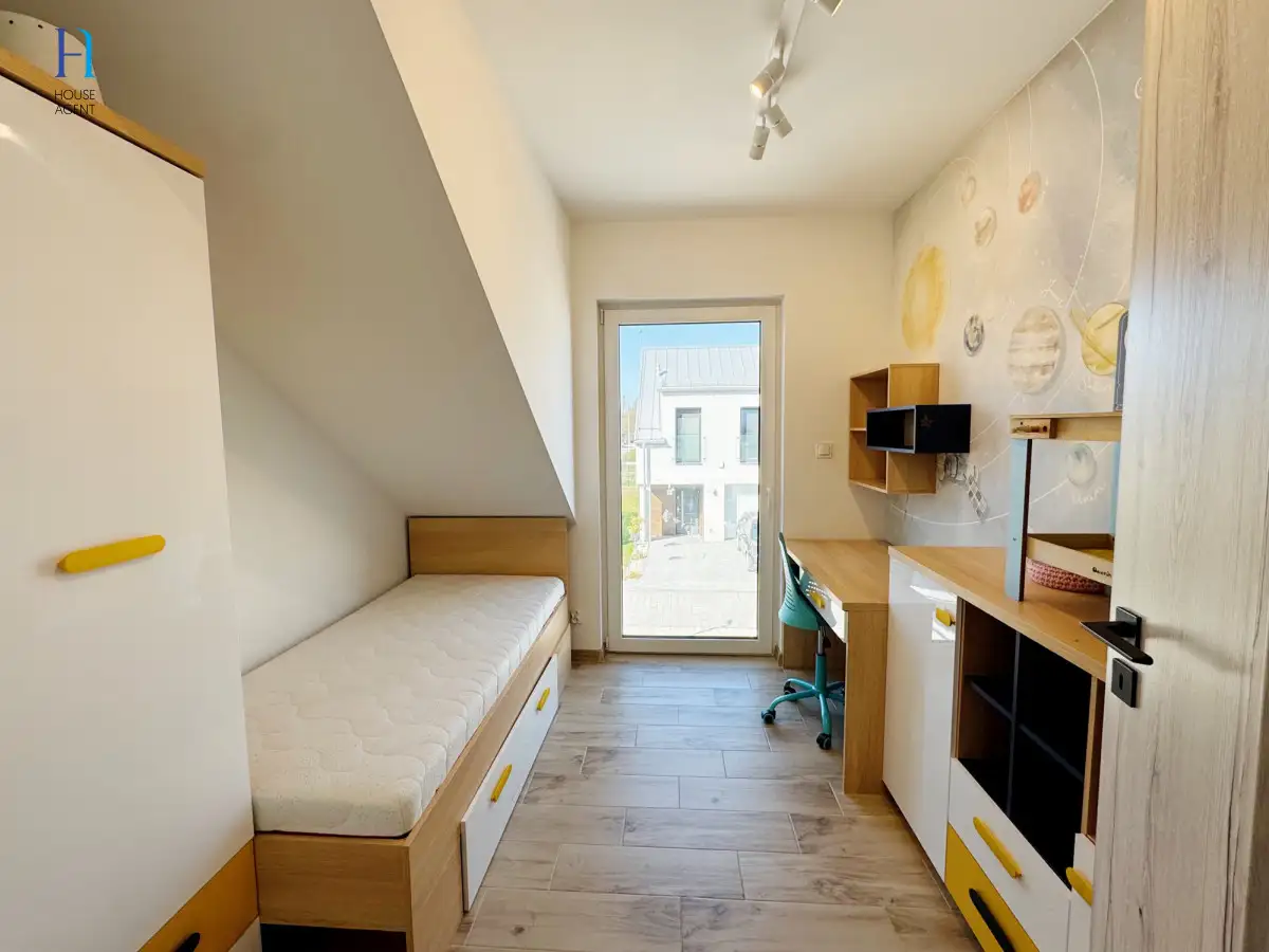 Dom w zabudowie szeregowej został odebrany w 2024 roku i jest w doskonałym stanie.