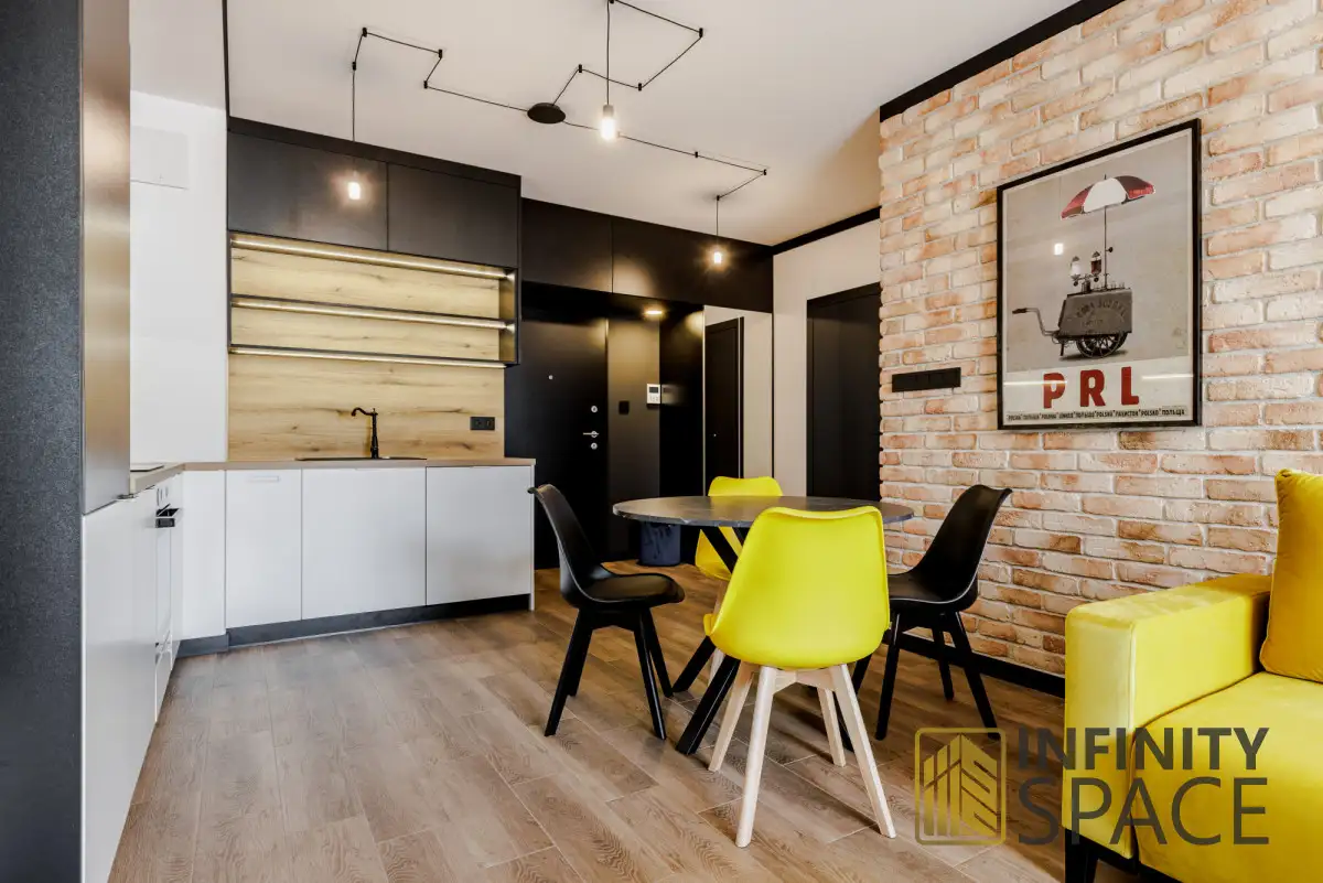 Mieszkanie:Dwupokojowe mieszkanie ma powierzchnię 45,1 m² i znajduje się na 1. piętrze 4-piętrowego budynku. Mieszkanie jest zaprojektowane przez architekta z priorytetem dla komfortu życia, w pełni wykończone z dbałością o szczegóły przy wykorzystaniu wysokiej klasy materiałów oraz wyposażone we wszystkie niezbędne sprzęty RTV i AGD (piekarnik, płyta grzewcza, okap, zmywarka, lodówko-zamrażarka, pralka) jakościowych marek. Lokal ma ekspozycję na południowy zachód. Gwarantuje to odpowiednie doświetlenie pomieszczeń niezależnie od pory roku i komfortowe warunki do odpoczynku. Mieszkanie jest także wysokie, co daje poczucie przestrzeni.