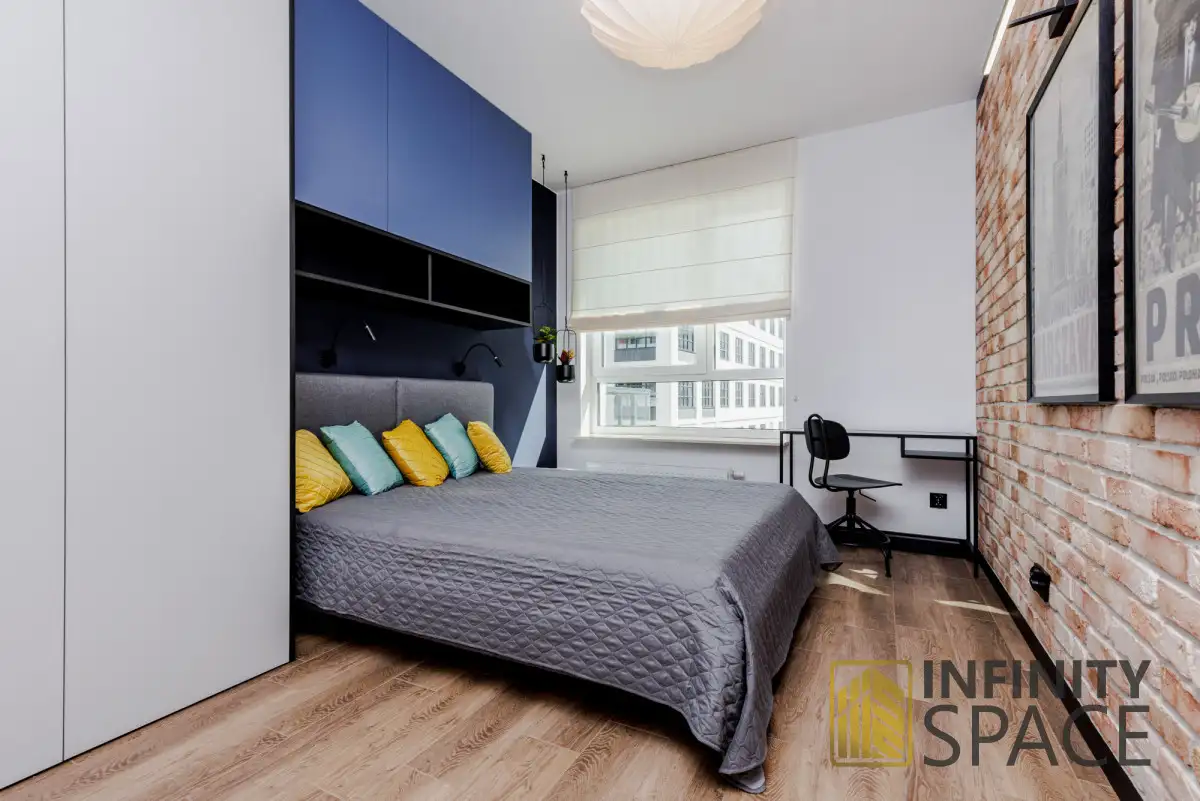 - sypialnia - z wygodnym łóżkiem oraz przestrzenią do przechowywania i pracy,