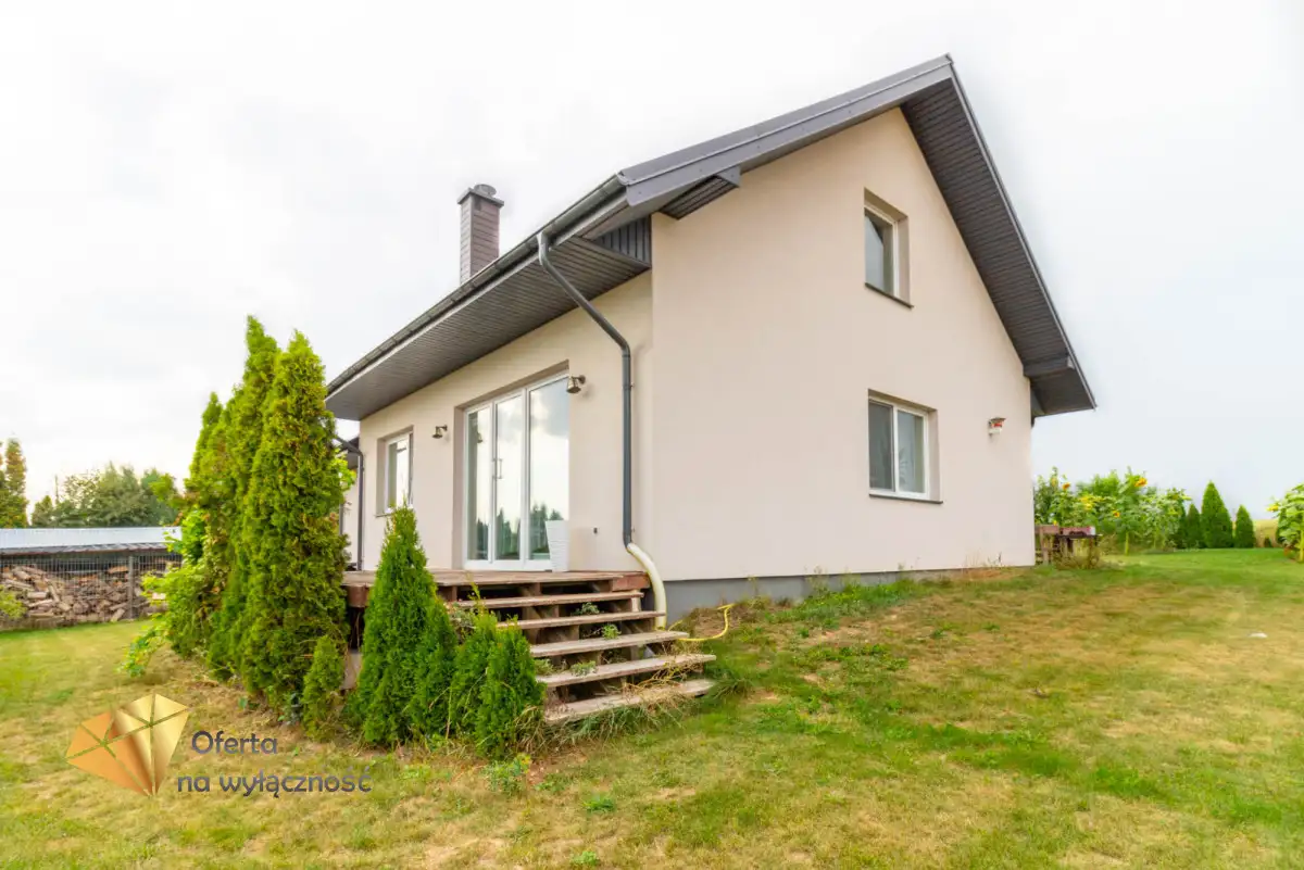 Dom jednorodzinny wolnostojący z garażem w bryle budynku i poddaszem, wybudowany i wykończony w 2019r. na działce o powierzchni 1227m².