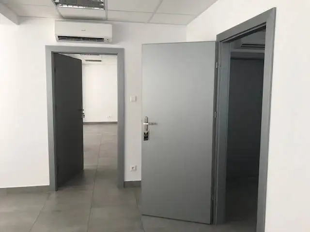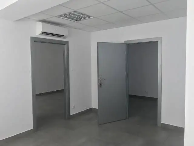 Kompleks biurowy: openspace, 2 x pokoje zamknięte, aneks kuchenny, klimatyzacja, rolety.