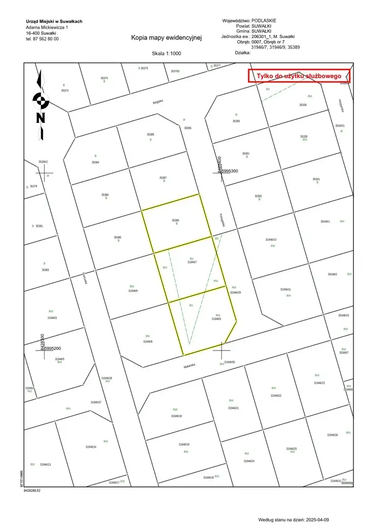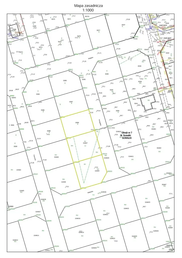 1. Oznaczona działką nr 35389 o powierzchni 0,0853 ha, niezabudowana, położona w Suwałkach w Obrębie nr 7, wchodząca w skład nieruchomości oznaczonej księgą wieczystą nr SU1S/00031671/3. Działka zgodnie z miejscowym planem zagospodarowania przestrzennego południowo - zachodniego rejonu ulicy Zastawie w Suwałkach zatwierdzonym Uchwałą LXVI/871/2024 Rady Miejskiej w Suwałkach z dnia 31.01.2024 roku, objęta jest konturem 11MNW - teren zabudowy mieszkaniowej jednorodzinnej wolnostojącej. Nieruchomość przeznaczona jest do sprzedaży w drodze przetargu ustnego nieograniczonego.