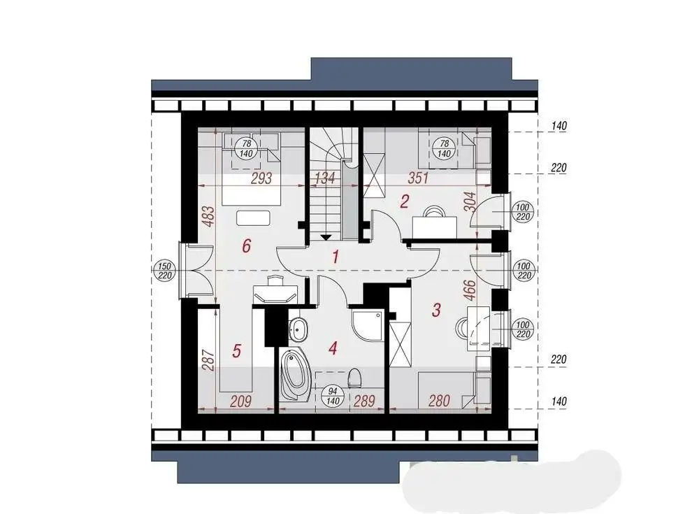 PODDASZE - 3 sypialnie, garderoba, łazienka, komunikacja. Plusem trzech sypialni jest wyjście na mały balkon z których podziwiać można okolicę.
