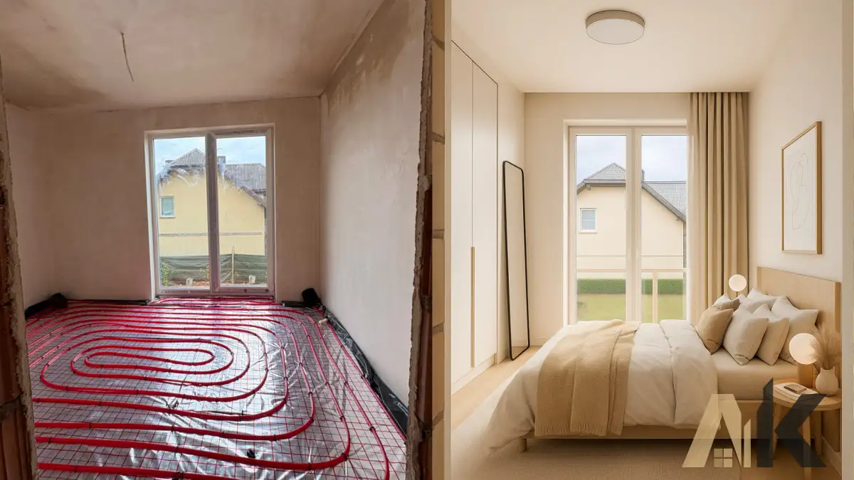 *ogrzewanie podłogowe w całym mieszkaniu + grzejniki w łazience