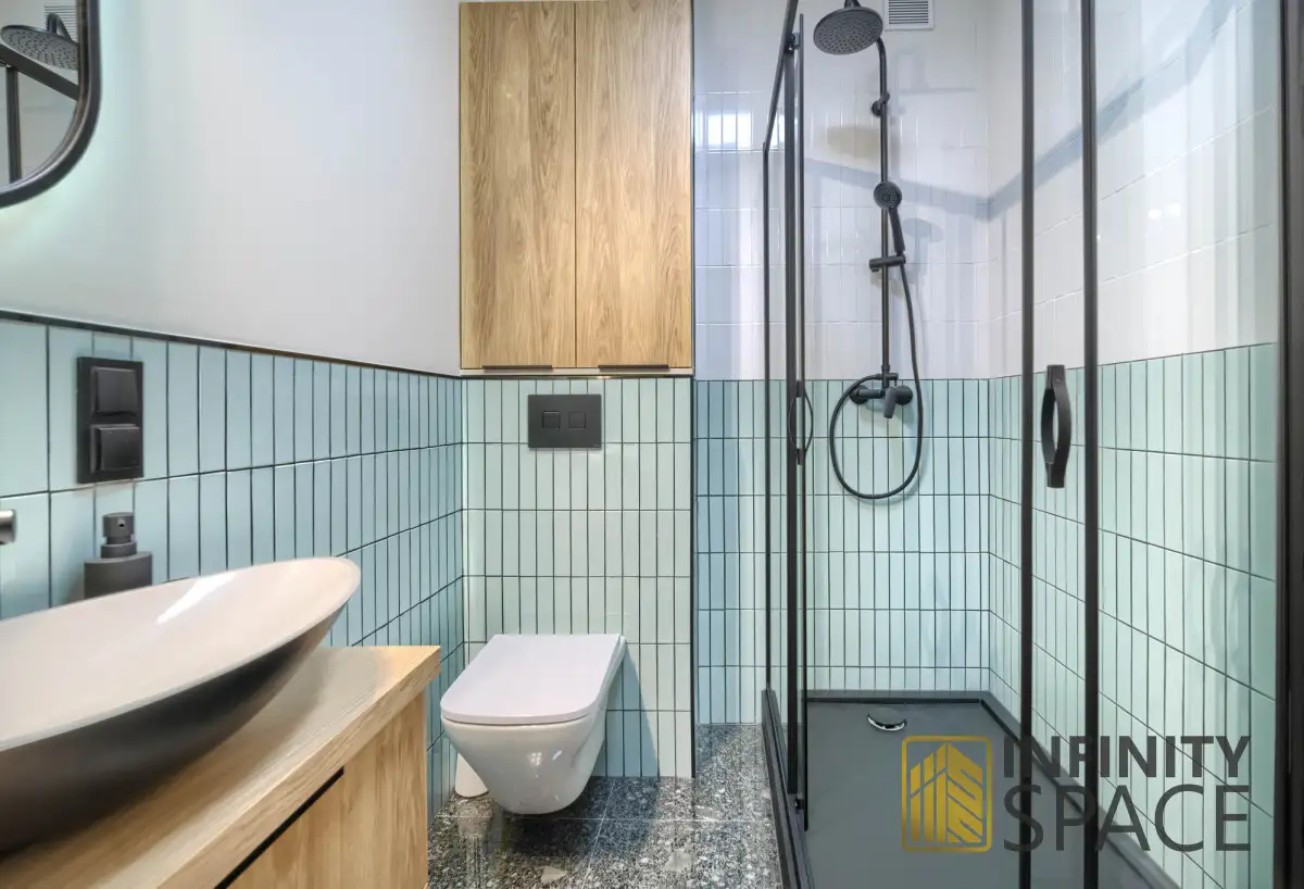 - łazienki o powierzchni około 4m² - z komfortową, designerską kabiną prysznicową o szerokości 120cm