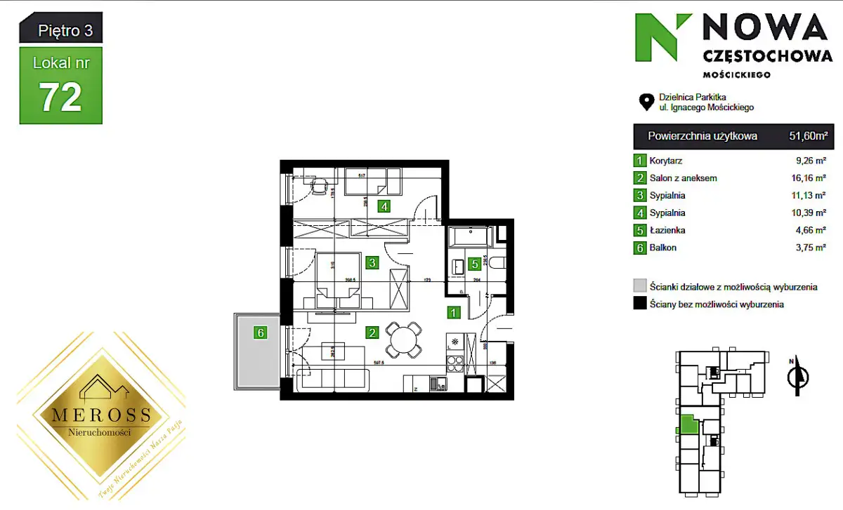 MEROSS Nieruchomości & Nowa Deweloper przedstawia do sprzedaży mieszkanie zlokalizowanew dzielnicy Parkitka w Częstochowiena osiedlu Nowa Częstochowa MałopolskaMieszkanie może być...
