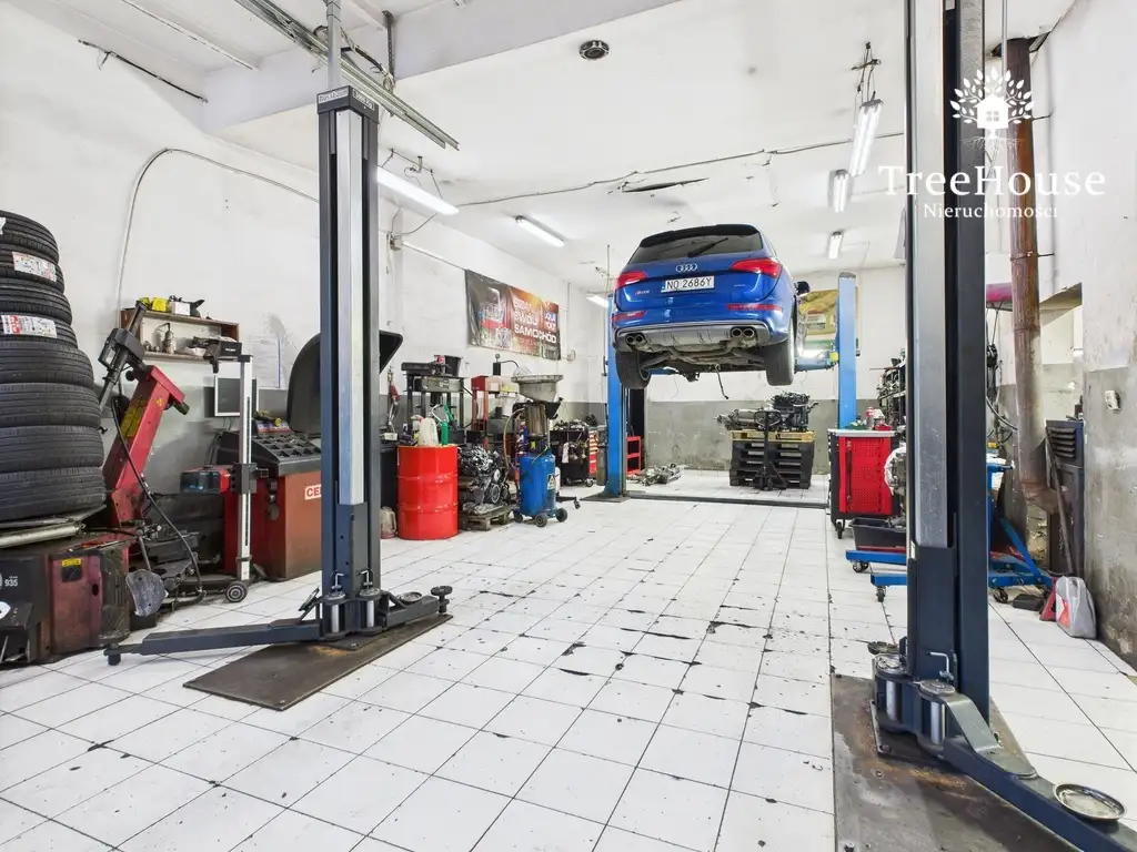 Obiekt jest obecnie wynajmowany jako warsztat samochodowy z czterema stanowiskami serwisowymi (sprzedaż bez wyposażenia warsztatowego).