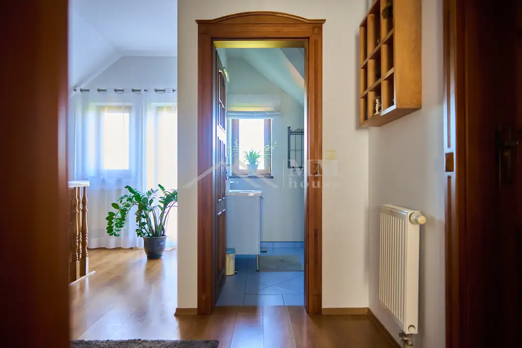 Dom o powierzchni użytkowej 134,60 m² został wykończony w bardzo wysokim standardzie, utrzymany w nienagannym stanie technicznym i gotowy do wprowadzenia bez żadnych nakładów. Budynek posiada jedno piętro, dzięki czemu cała przestrzeń jest funkcjonalna i wygodna w codziennym użytkowaniu.