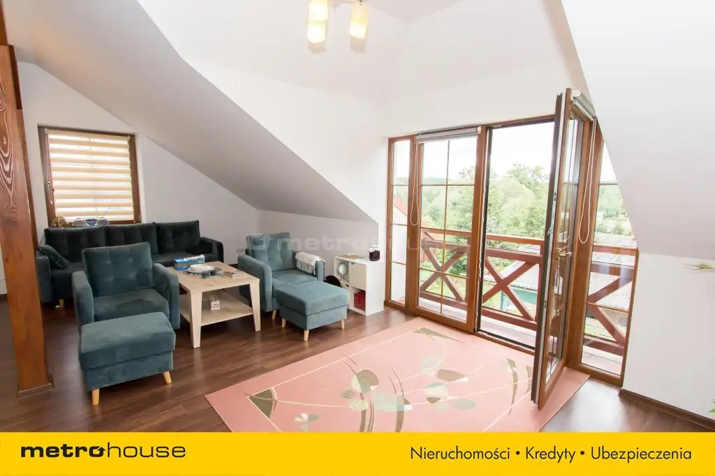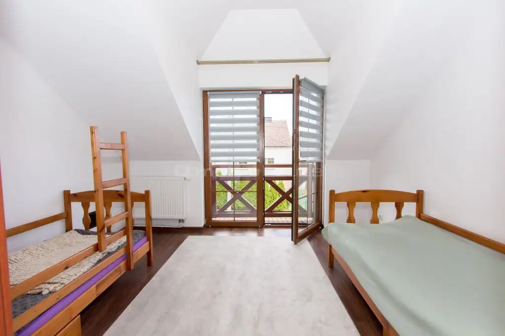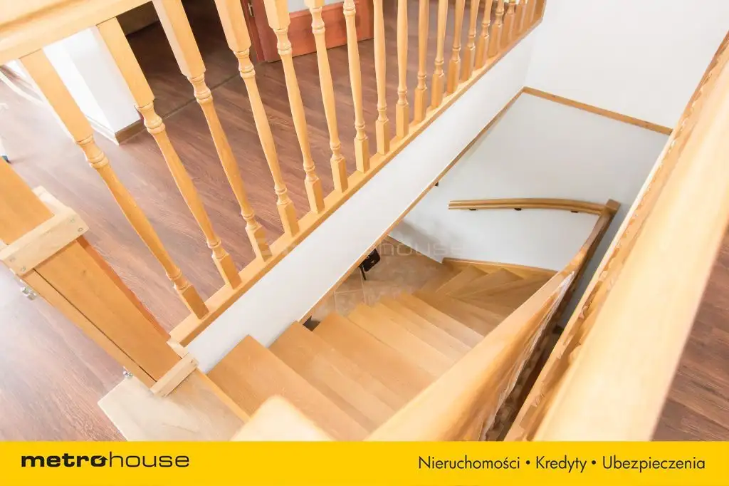 Piękne, drewniane schody prowadzą na piętro, gdzie czeka imponujący salon przestrzeń pełna światła i możliwości aranżacyjnych. Dwa kolejne pokoje dają poczucie prywatności, a łazienka z wolnostojącą wanną zaprasza do odprężenia w stylu SPA. Funkcjonalnym uzupełnieniem jest pomieszczenie gospodarcze, które ułatwia codzienną organizację.