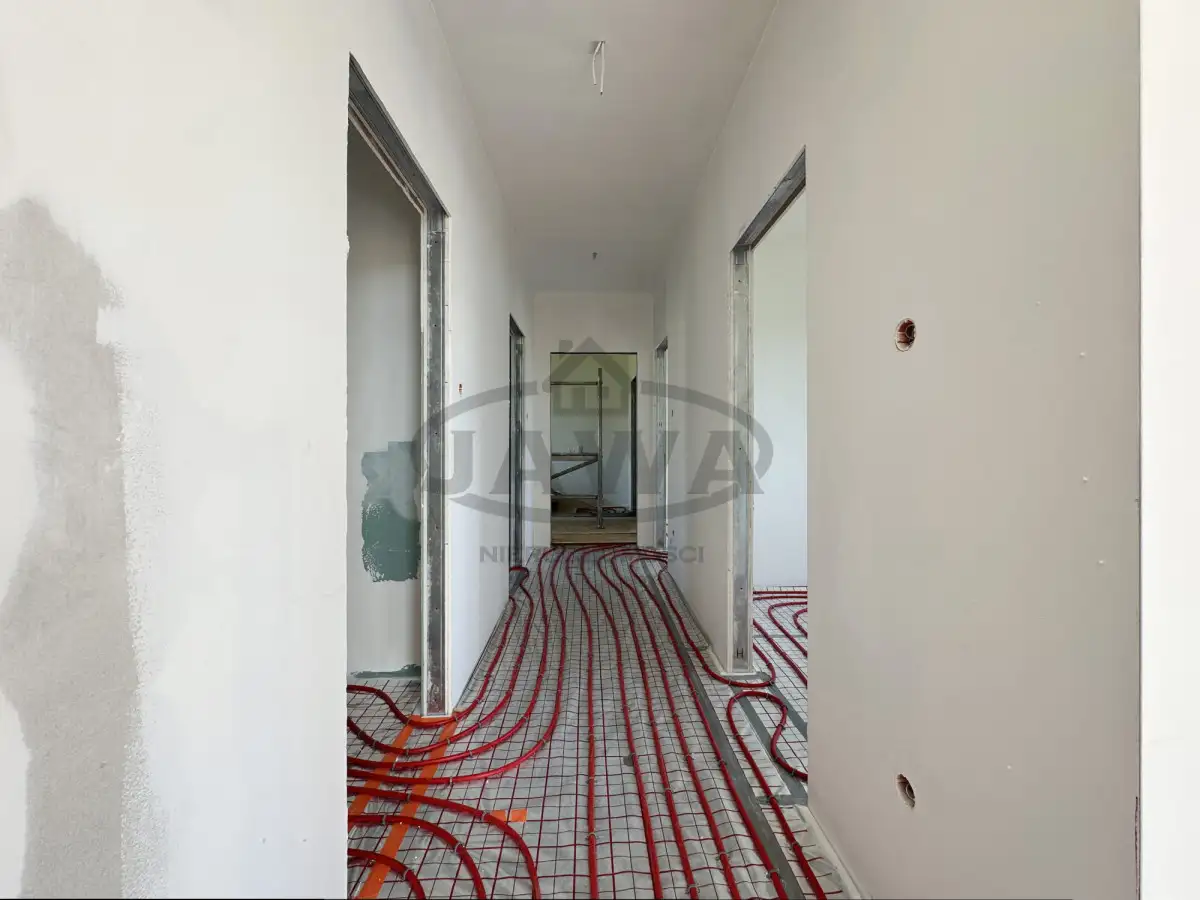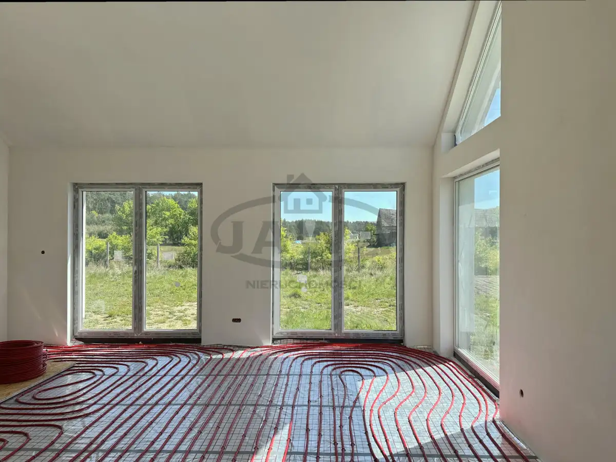 Dom wolnostojący w stanie deweloperskim, posadowiony na przestronnej działce o powierzchni 804 m². To świeżo wybudowany budynek, zaprojektowany z myślą o komforcie i nowoczesnych standardach energooszczędności: