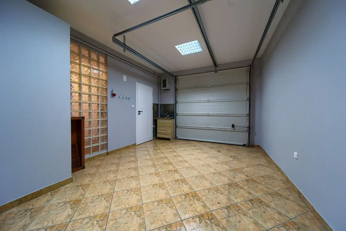 Bezpieczeństwo i wygodę codziennego użytkowania podnoszą: elektryczna brama wjazdowa do garażu, rolety zewnętrzne od strony ogrodu (zapewniające prywatność i dodatkową izolację) oraz rolety wewnętrzne od frontu budynku. W trosce o przyszłych mieszkańców, doprowadzono instalację pod system alarmowy oraz monitoring (kamery), a w salonie przygotowano okablowanie pod system kina domowego. Dodatkowym udogodnieniem jest zlew z podłączeniem wody w garażu, ułatwiający prace porządkowe.