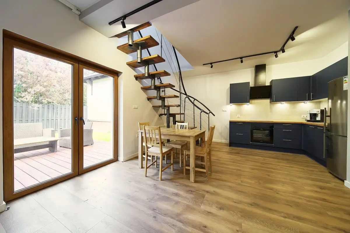 Kuchnia jest w pełni umeblowana i wyposażona - oferuje wysokiej jakości nowoczesne meble w zabudowie oraz sprzęt AGD (z wyjątkiem pralki), gotowe do użytkowania. Niezwykle istotnym atutem jest fakt, że dom sprzedawany jest z całym wyposażeniem widocznym na zdjęciach - meblami, elementami dekoracyjnymi i większością sprzętów, co pozwala na wprowadzenie się od zaraz i cieszenie się nowym miejscem bez zbędnych formalności i dodatkowych wydatków.