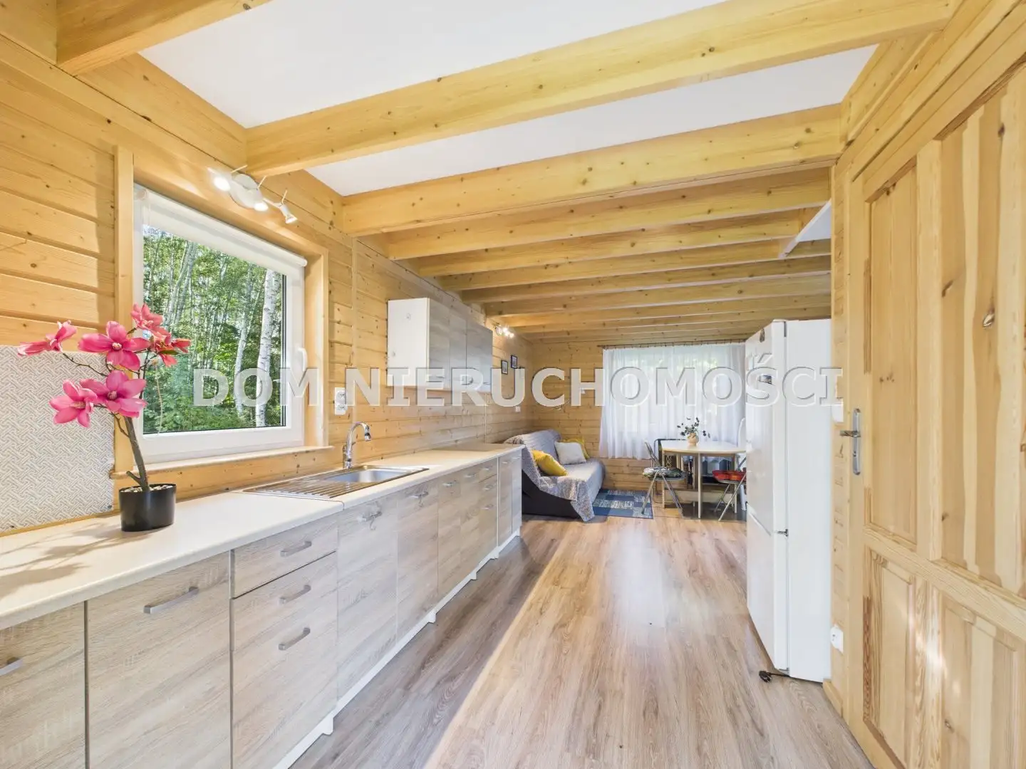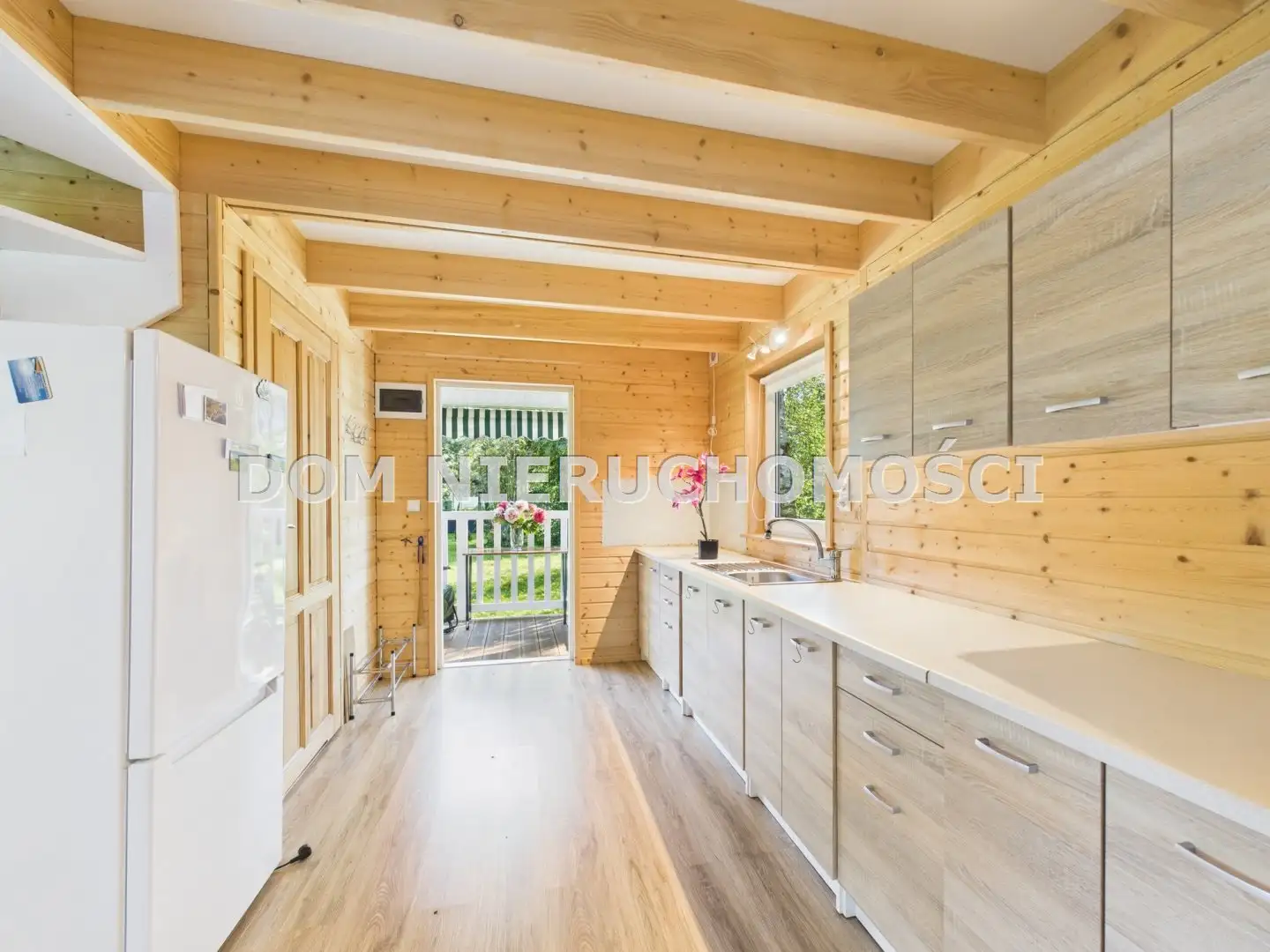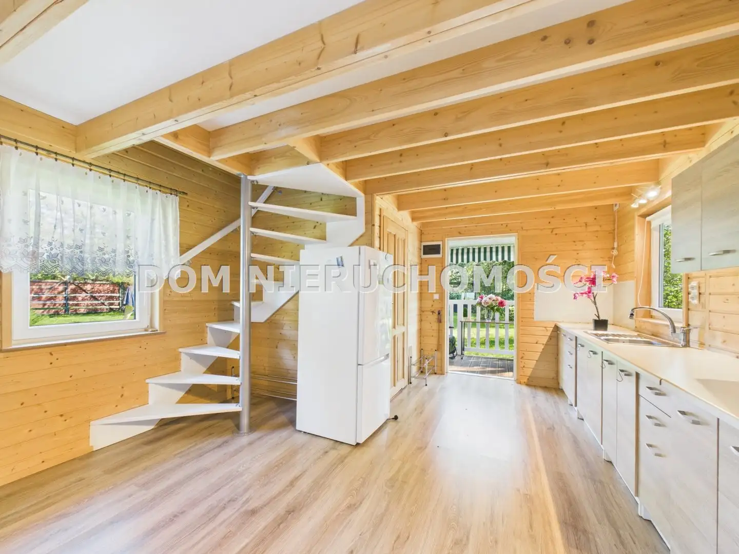 Domek letniskowy wybudowany został w 2019 roku, jest on drewniany.