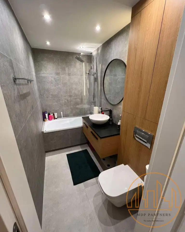 Mieszkanie zostało wykończone materiałami wysokiej klasy, z dbałością o komfort i estetykę: