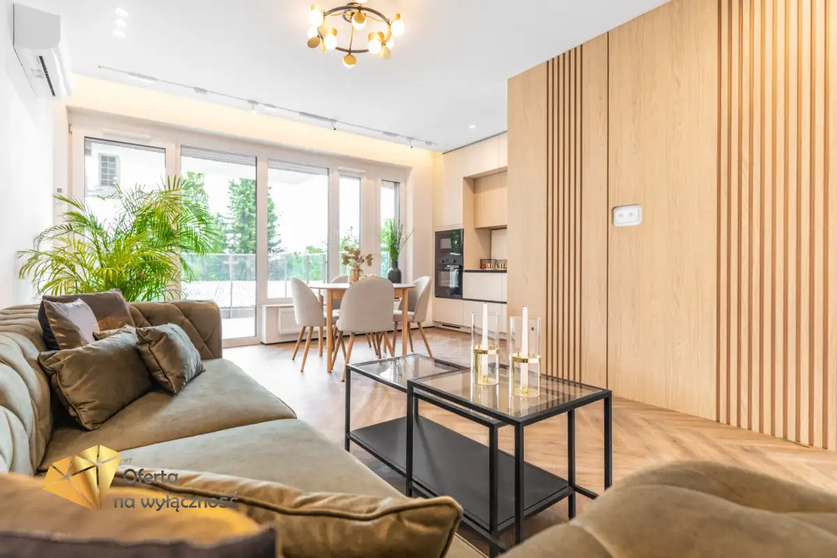 Mieszkanie wykończone w wysokim standardzie, gotowe do wprowadzenia. Stolarka meblowa na zamówienie, panel winylowy na całej powierzchni podłóg, klimatyzacja, sprzęt AGD w zabudowie kuchennej (lodówka, płyta indukcyjna, piekarnik, zmywarka, mikrofalówka), podwieszane sufity z oświetleniem led, deska kompozytowa na balkonie.