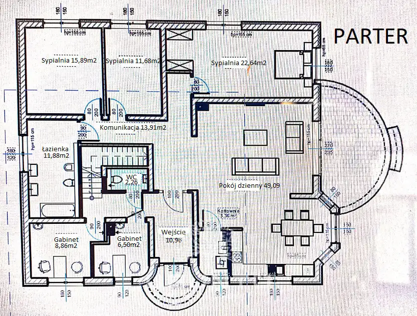 PARTER:To łącznie ponad 186m² powierzchni użytkowej podzielonej na 2 strefy (mieszkalną i usługową), dzięki czemu nieruchomość doskonale nada się dla osób pracujących, czy przyjmujących klientów w domu. Nic nie stoi oczywiście na przeszkodzie, aby zrezygnować z funkcji usługowej.